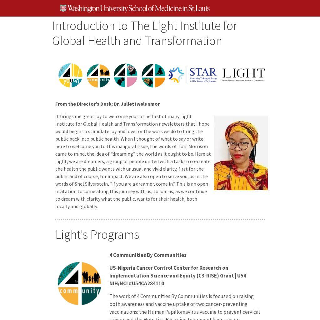 To stay up to date with the Light team, please subscribe to our monthly newsletter using the button below and keep an eye out for our website and social media updates! To learn more about Light or if you have ideas for partnership, please write to us at lightinstitute@wustl.edu.