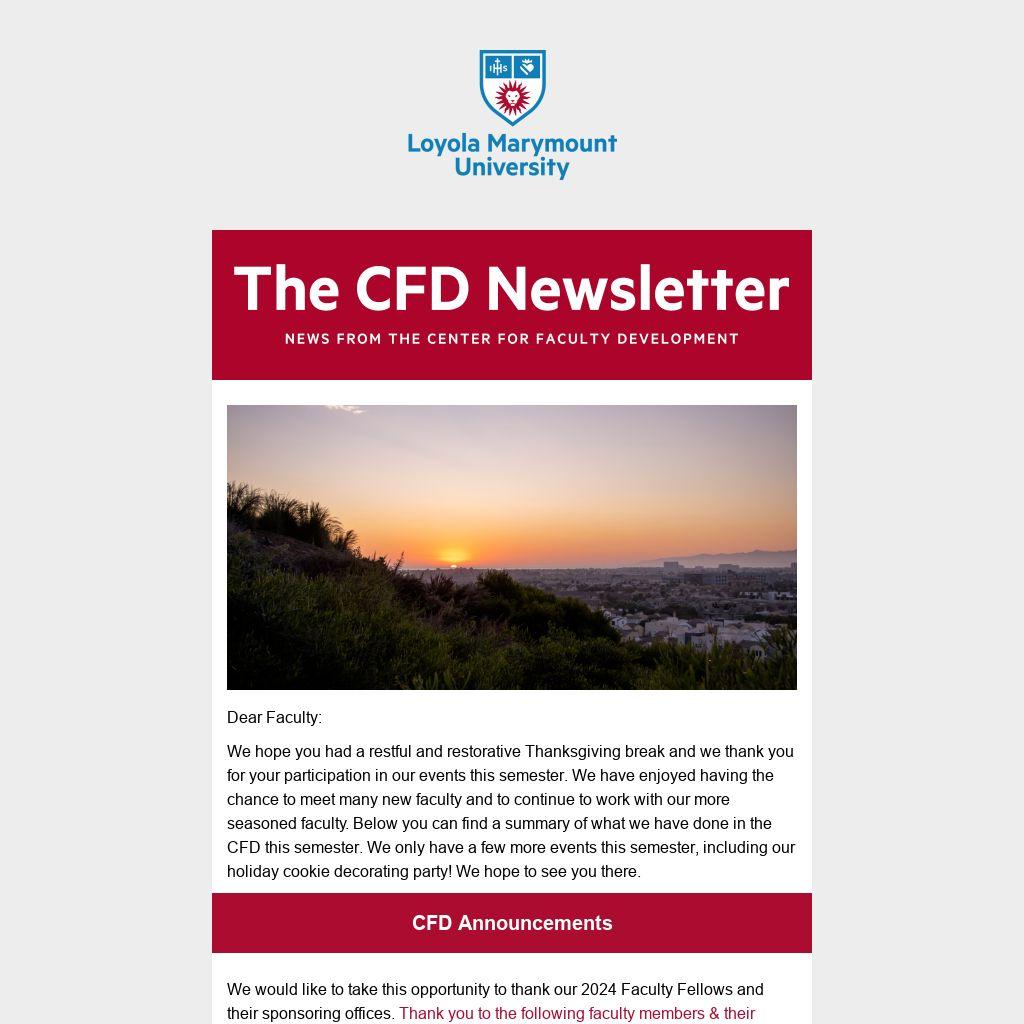 The Center for Faculty Development’s (CFD) Professional and Leadership Development branch had a busy fall 2024. During the fall semester several workshops and events were held including the first workshop at the CFD, a very well attended workshop on how to have difficult conversations. This workshop brought faculty from all five colleges at LMU, as well as the law school. We plan to bring this event back in the spring and hopefully expand on it to include additional strategies for negotiating challenges in specific academic environments. Additional events included a leadership share aimed at department chairs held in conjunction with Associate Provost Tarleton and a workshop on collaborative teaching, as well as several listening sessions with faculty about their concerns and needs related to leadership and service. Based on these data several workshops are already planned for the spring semester including an LMU leadership Q & A panel, a workshop on succession planning in departments, and a workshop for pre-tenure faculty on navigating leadership and service at LMU. These workshops are based on data we collected from a faculty survey, focus groups, and a number of in-person and online listening sessions with faculty and associate deans, as well as numerous meetings with faculty, department chairs, associate deans and deans. These data show a need for more leadership skills training, as well as assistance in navigating academic administration. We are currently working with AP Tarleton on a leadership skills series for the spring semester which would include a number of different workshops. Additionally, we have been working with AP Tarleton on how to improve the hiring and training of department chairs. We will be announcing the dates and content of the leadership series soon, as well as various stand-alone workshops for the spring.