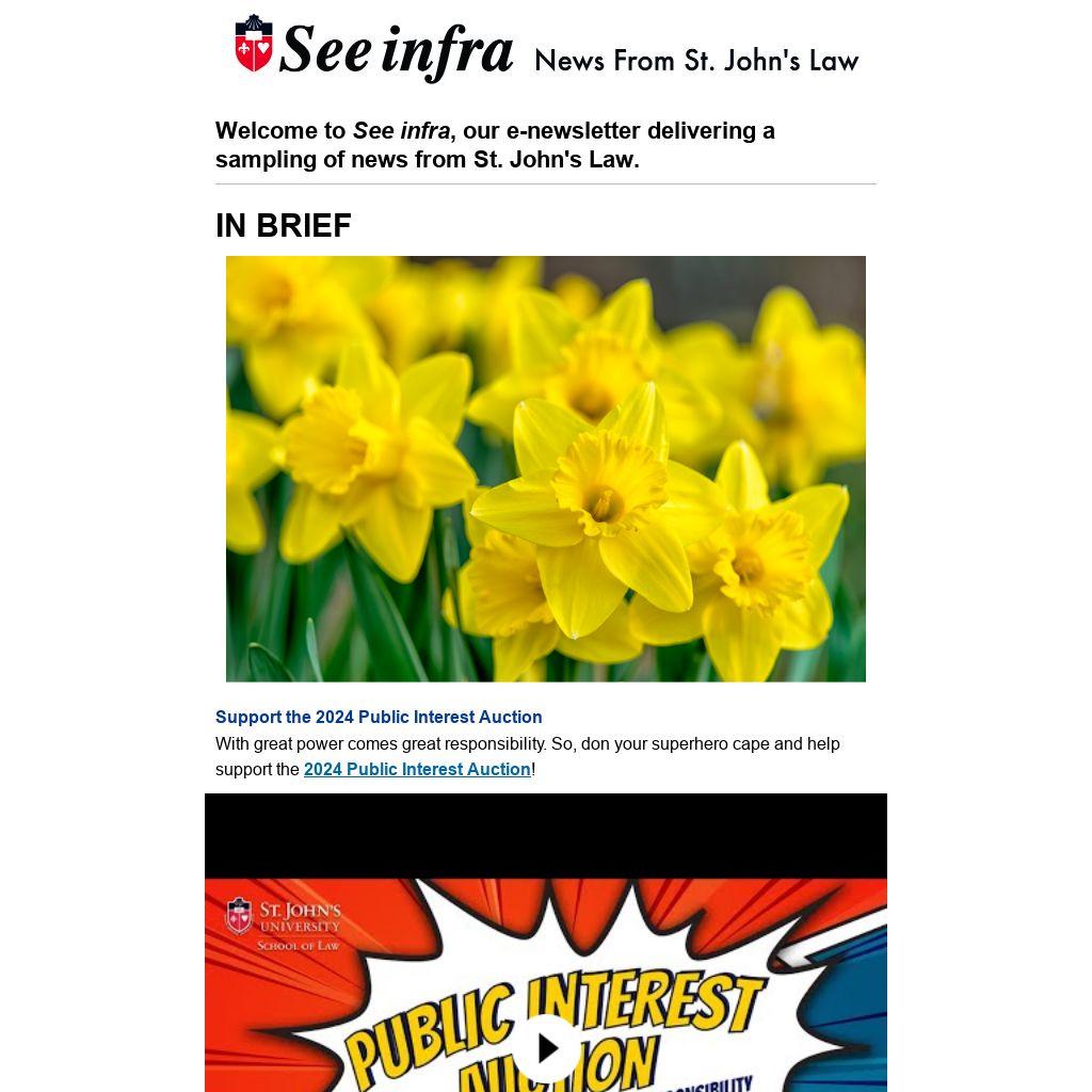Welcome to See infra, our e-newsletter delivering a sampling of news from St. John's Law. |