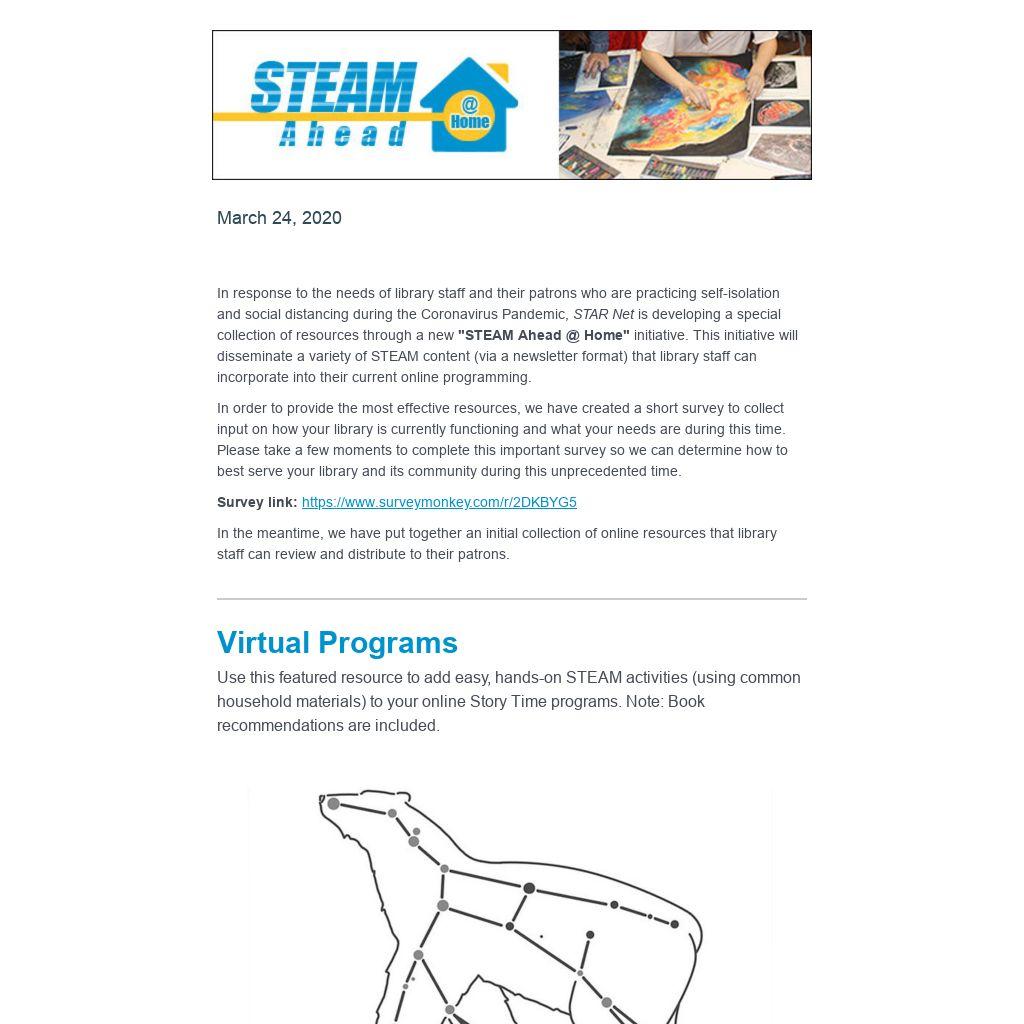 The STAR Library Network (STAR Net) is a hands-on learning network for libraries and their communities across the country. STAR Net focuses on helping library professionals build their STEM skills by providing “science-technology activities and resources” (STAR) and training to use those resources. Plus, engage public audiences nationwide in informal and lifelong learning with the excitement of exploration and discovery through STAR Net's NASA@ My Library program!