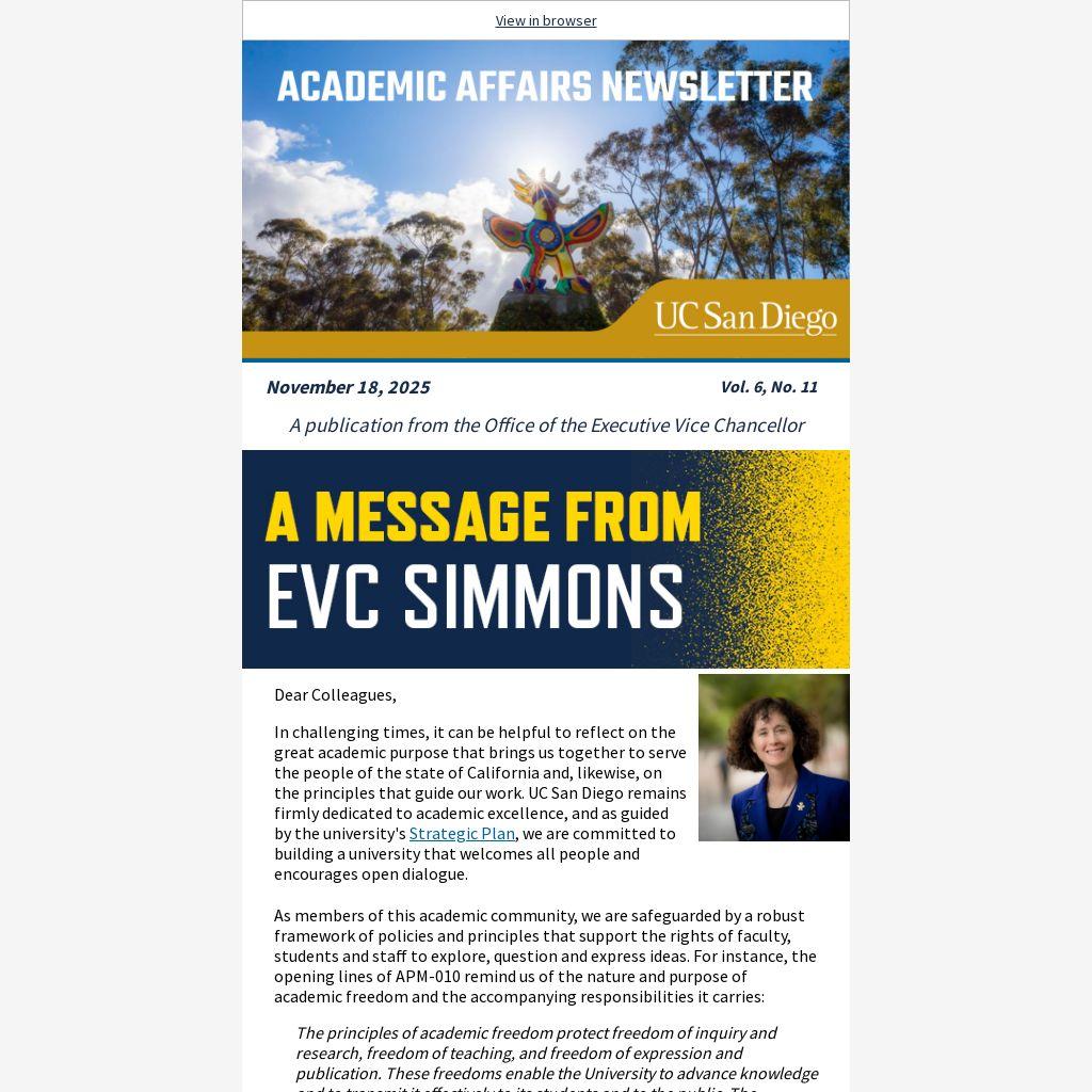 In challenging times, it can be helpful to reflect on the great academic purpose that brings us together to serve the people of the state of California and, likewise, on the principles that guide our work. UC San Diego remains firmly dedicated to academic excellence, and as guided by the university's Strategic Plan, we are committed to building a university that welcomes all people and encourages open dialogue.