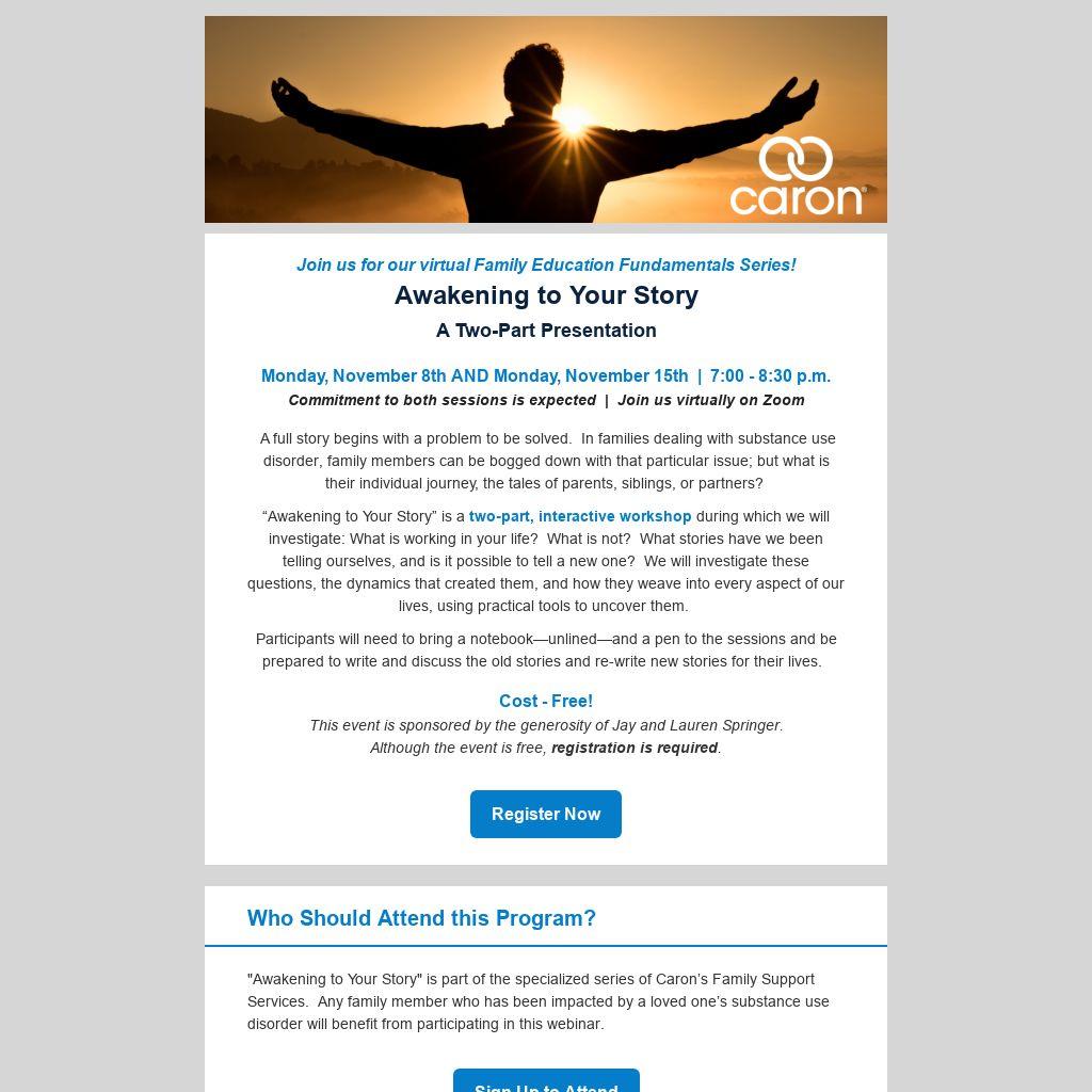 A full story begins with a problem to be solved. In families dealing with substance use disorder, family members can be bogged down with that particular issue; but what is their individual journey, the tales of parents, siblings, or partners?