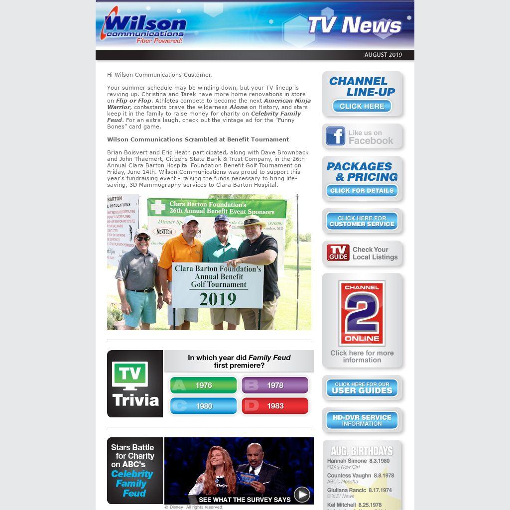 Brian Boisvert and Eric Heath participated, along with Dave Brownback and John Thaemert, Citizens State Bank & Trust Company, in the 26th Annual Clara Barton Hospital Foundation Benefit Golf Tournament on Friday, June 14th. Wilson Communications was proud to support this year's fundraising event - raising the funds necessary to bring life-saving, 3D Mammography services to Clara Barton Hospital.