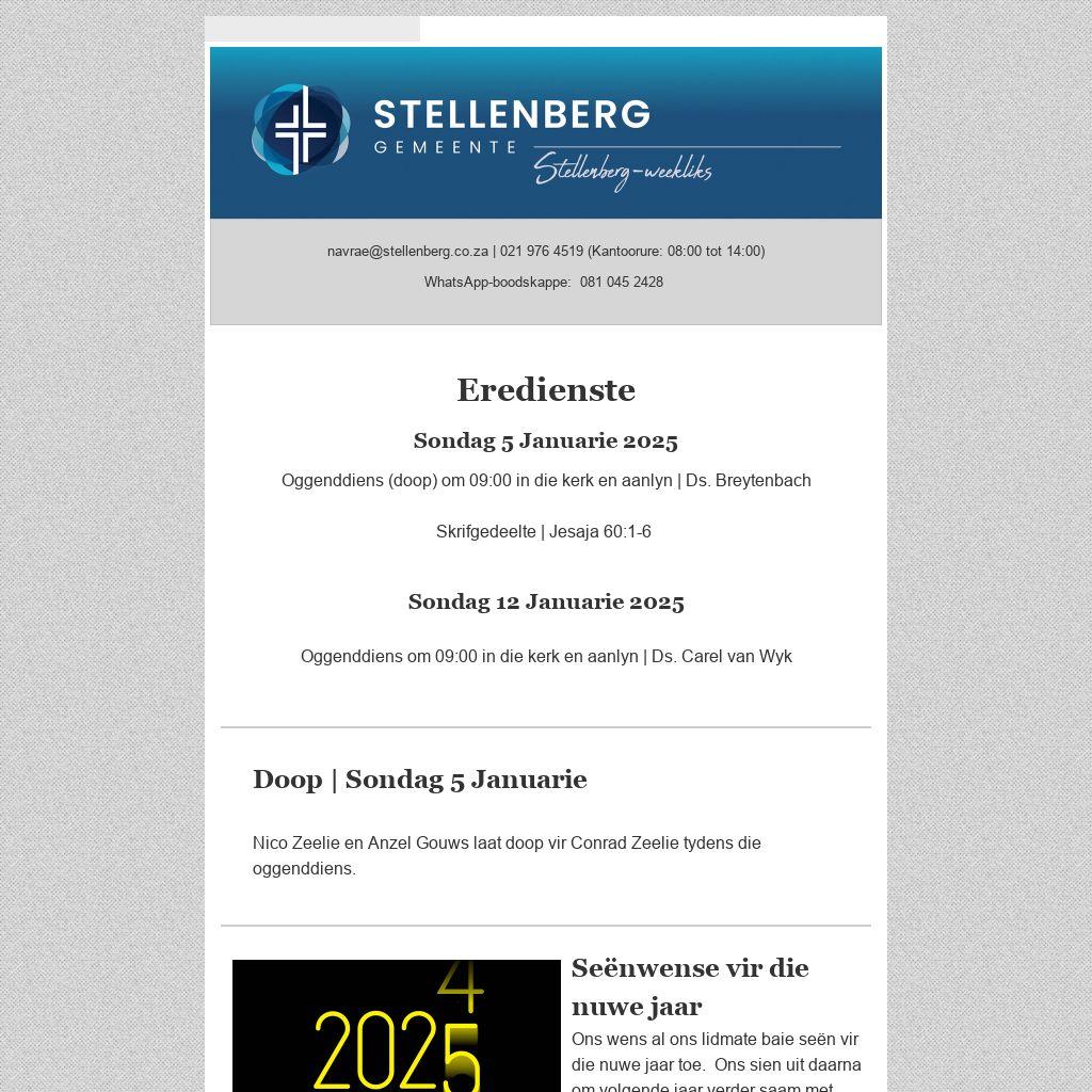 Indien jy vroeg in die nuwe jaar kaste regpak en besluit om van die witolifante in die huis ontslae te raak, oorweeg asseblief om dit vir die basaar se witolifanttafel te skenk. Enige huisraad, gereedskap, speelgoed, sporttoerusting, ens. is welkom. Gee asseblief bydraes by die kerkkantoor af.