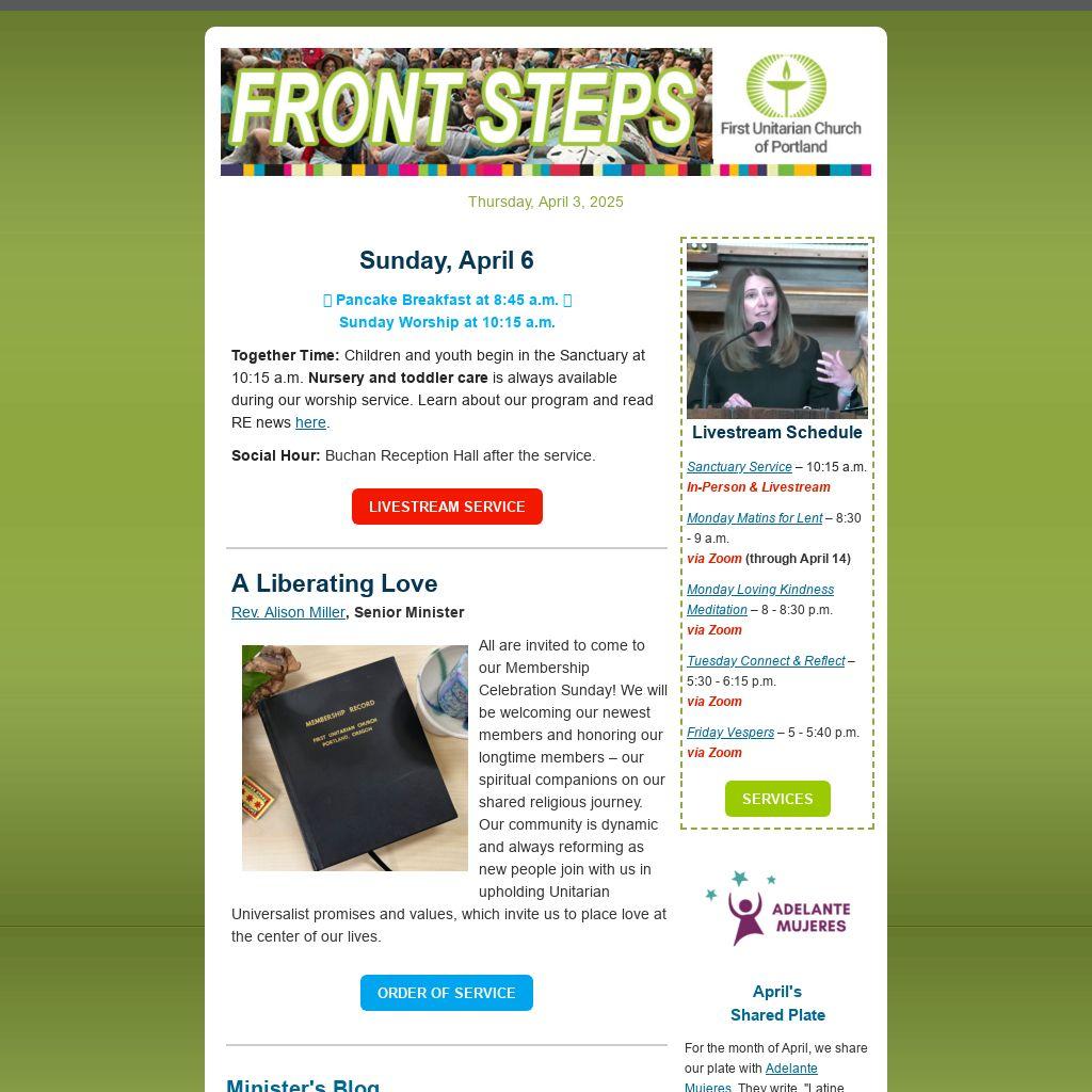 Got something for Front Steps? Send in your church-related submission for our weekly publication. Use "Front Steps" as the subject line and submit here.