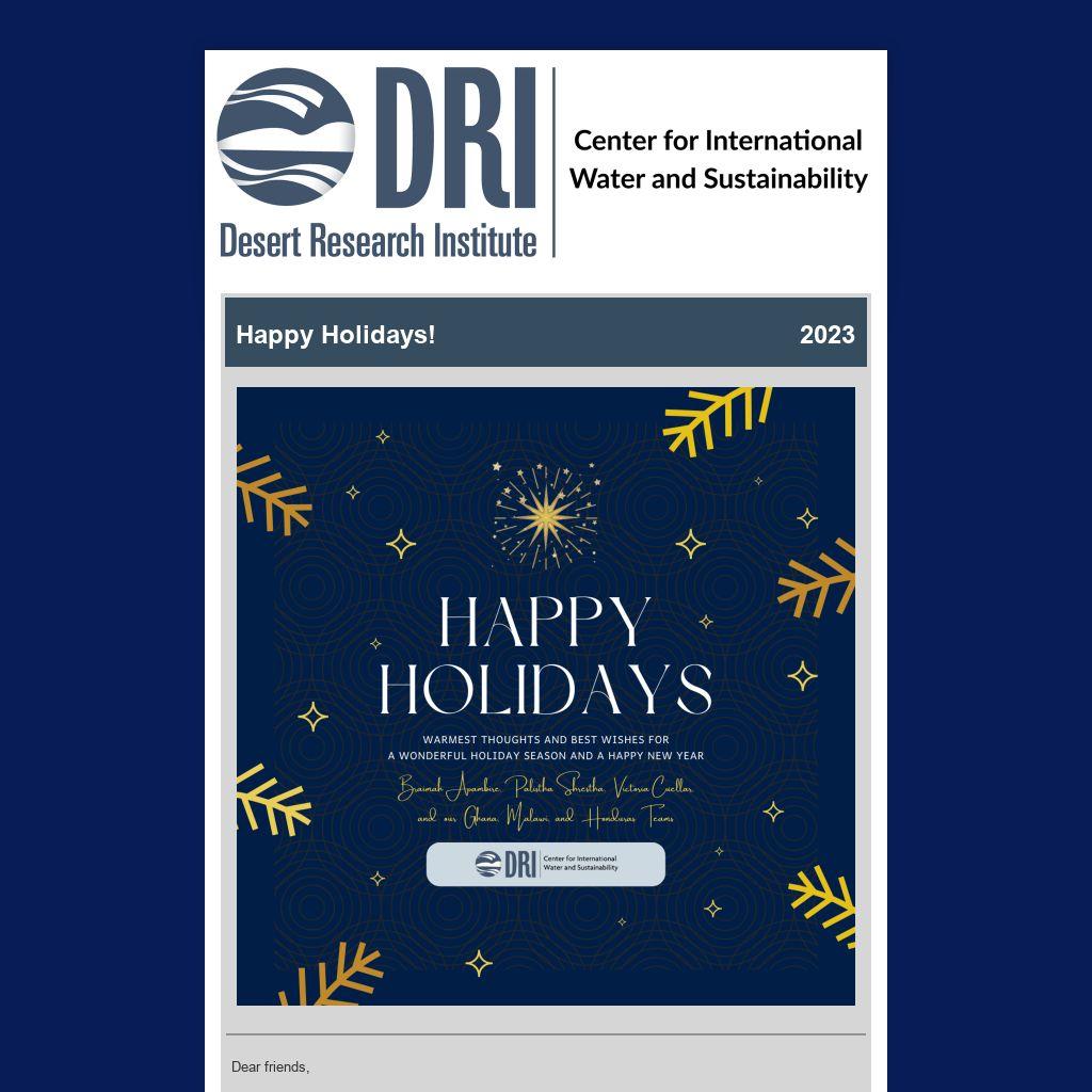We extend our warmest wishes and want to thank you for your financial support and collaborations with CIWAS. On behalf of everyone on the CIWAS team, our Ghana, Malawi, and Honduras teams, the University for Development Studies - Ghana, Uganda Christian University, our WASH Expert Instructors, and all our supporting DRI faculty and staff - best wishes to you and your families. We look forward to continued collaboration and success in the upcoming year.