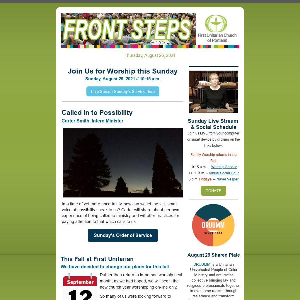 Have a Submission for E-News?If you have a church-related submission you would like published in our weekly Front Steps (E-News), please submit it here with subject line “For E-News.”