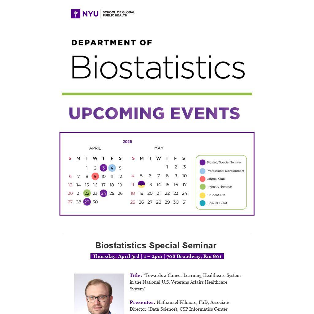 Don't miss this opportunity to engage with cutting-edge biostatistical research and connect with colleagues from across the NYU community!