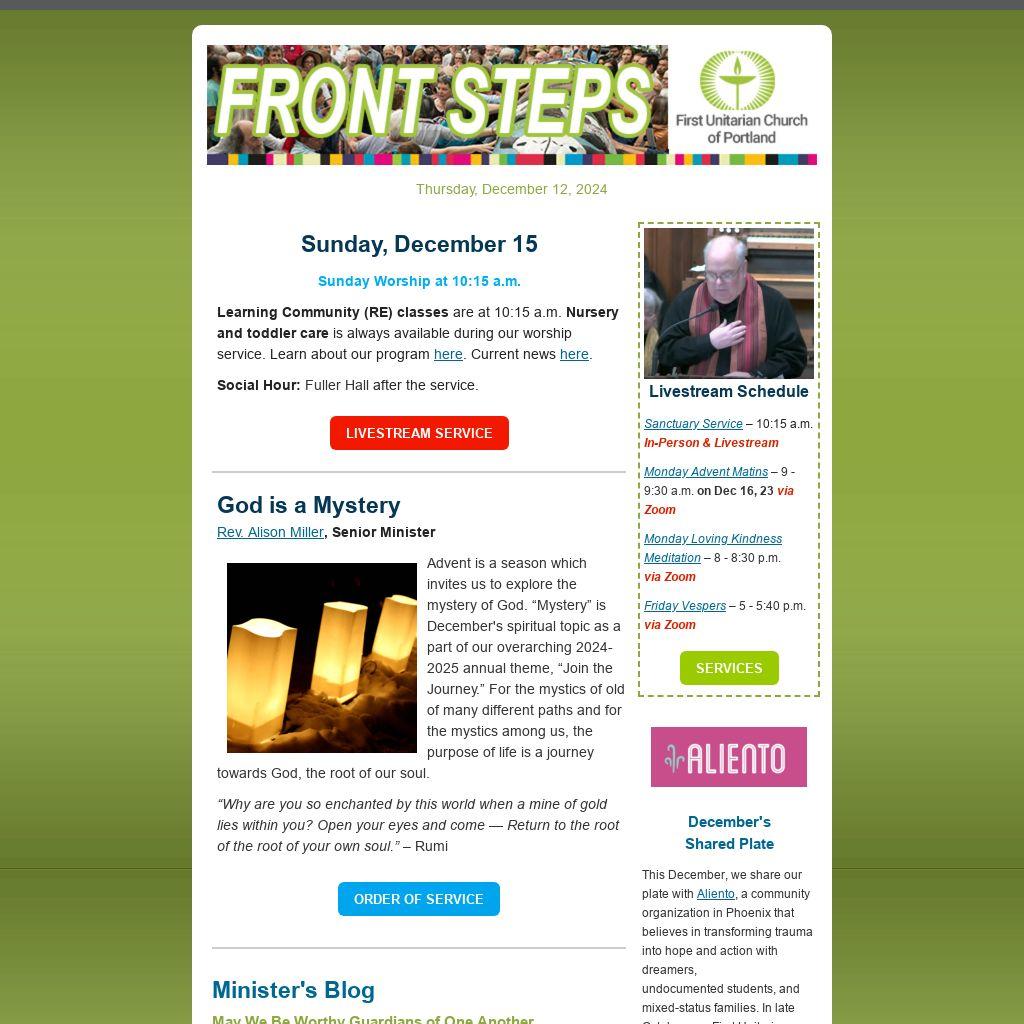 Got something for Front Steps? Send in your church-related submission for our weekly publication. Use "Front Steps" as the subject line and submit here.