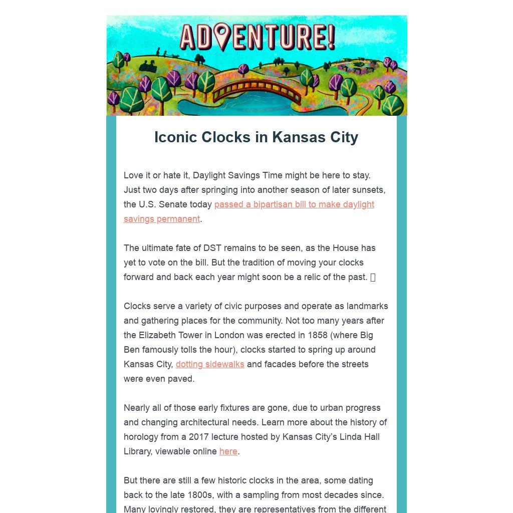 But there are still a few historic clocks in the area, some dating back to the late 1800s, with a sampling from most decades since. Many lovingly restored, they are representatives from the different eras of Kansas City history. 🕰️