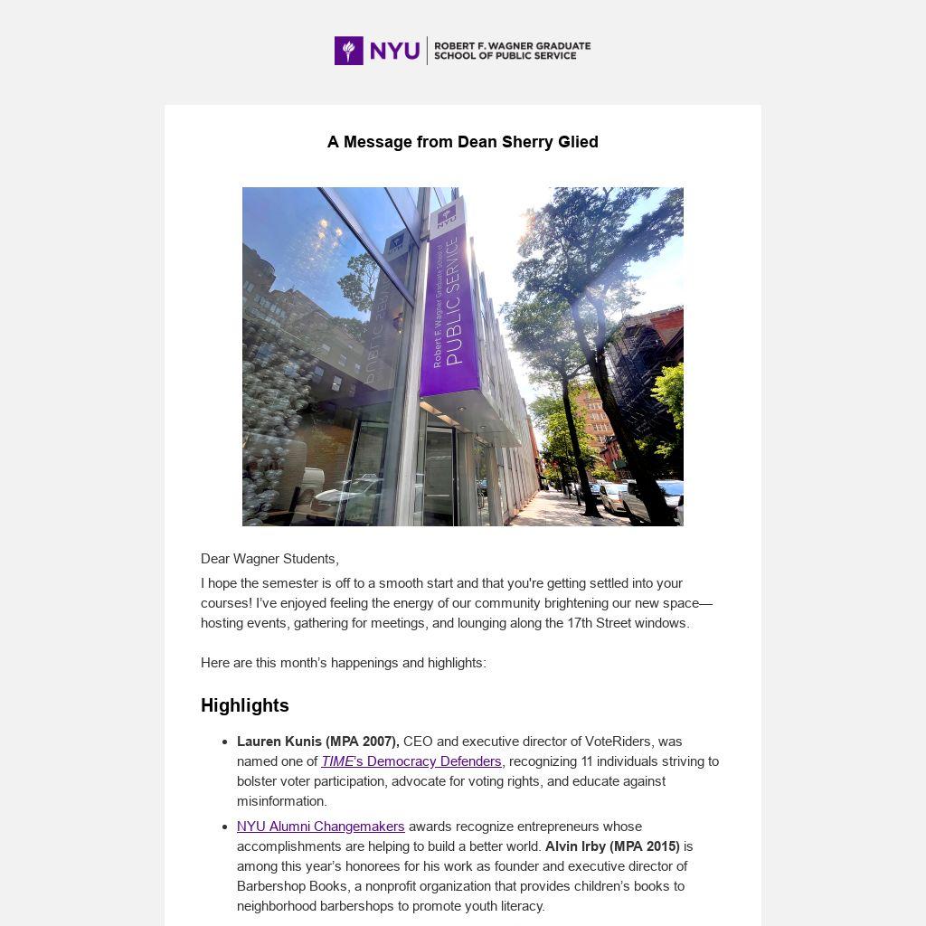 Wagner’s website. If you have any questions about anything in these monthly bulletins, please contact NYU Wagner Chief of Staff,