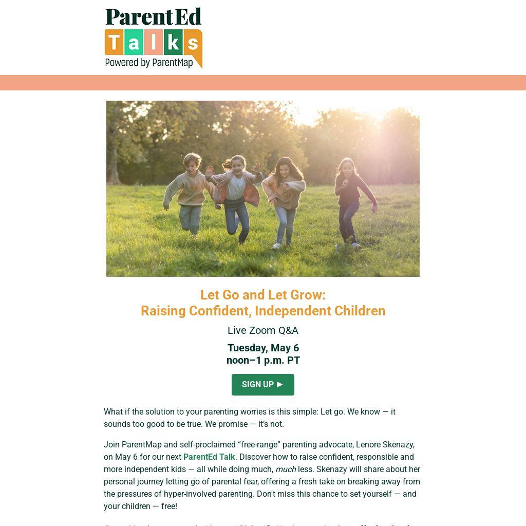 Join ParentMap and self-proclaimed “free-range” parenting advocate, Lenore Skenazy, on May 6 for our next ParentEd Talk. Discover how to raise confident, responsible and more independent kids — all while doing much, much less. Skenazy will share about her personal journey letting go of parental fear, offering a fresh take on breaking away from the pressures of hyper-involved parenting. Don't miss this chance to set yourself — and your children — free!