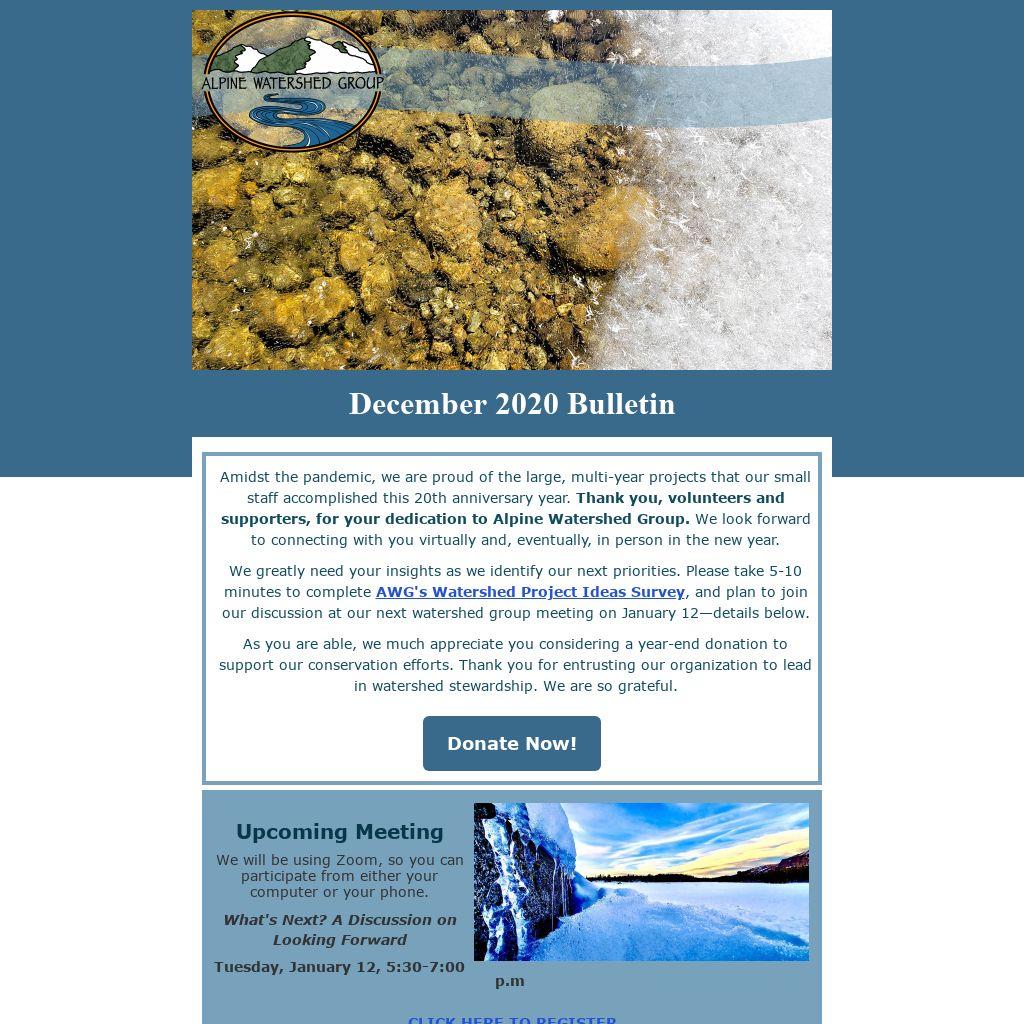 This incredibly important project wouldn’t be possible without the support of the above organizations. The State Water Board has funded extensive lab analyses for the last two years totaling over $27,000. The California Alpine Club Foundation, The Strong Foundation for Environmental Values, and the Sagebrush Chapter of Trout Unlimited were essential to funding AWG staff time. Alpine County Public Health Officer Dr. Johnson provided mentorship and critical public health communication. We are forever grateful for all of our partners' time, efforts, and support.