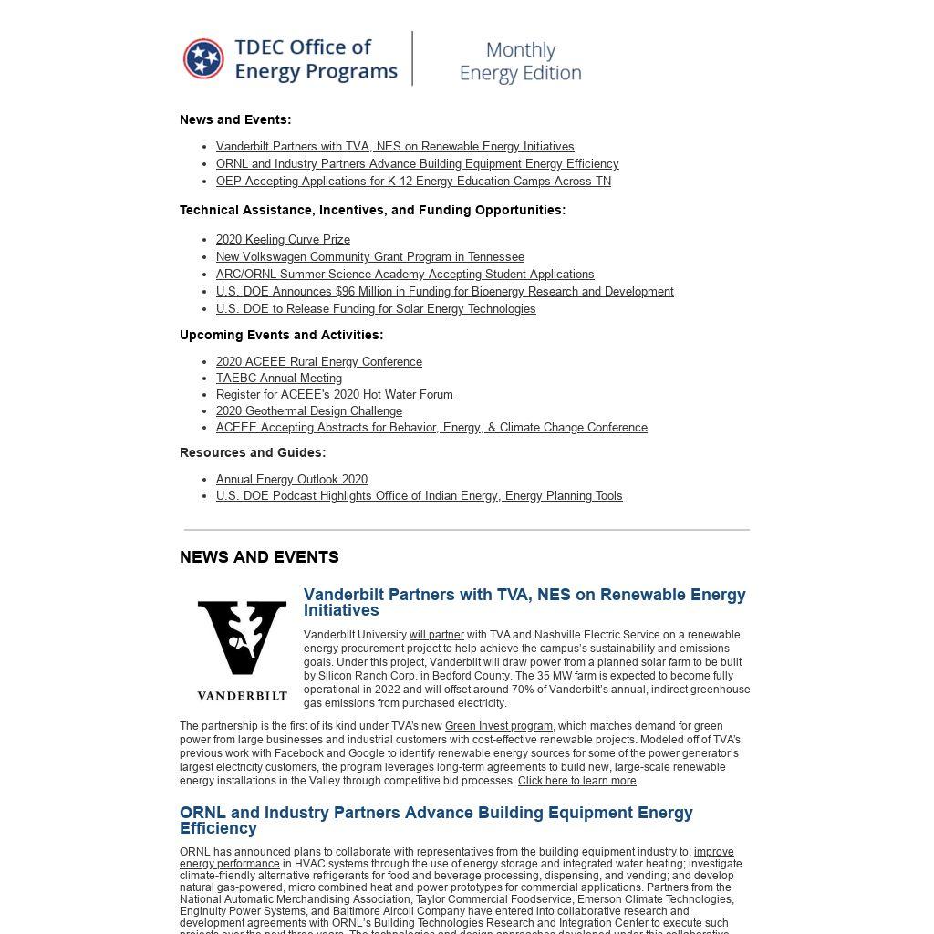 | Vanderbilt Partners with TVA, NES on Renewable Energy Initiatives