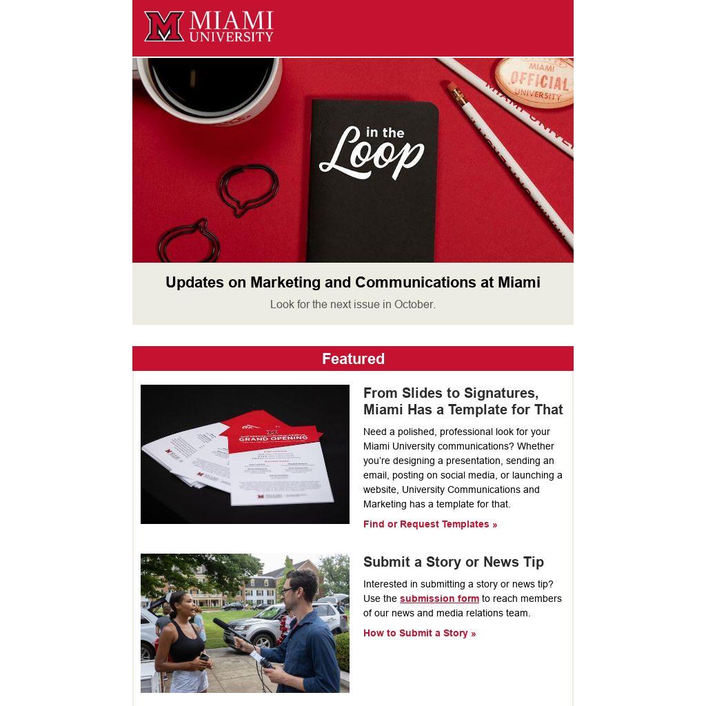 Need a polished, professional look for your Miami University communications? Whether you’re designing a presentation, sending an email, posting on social media, or launching a website, University Communications and Marketing has a template for that.