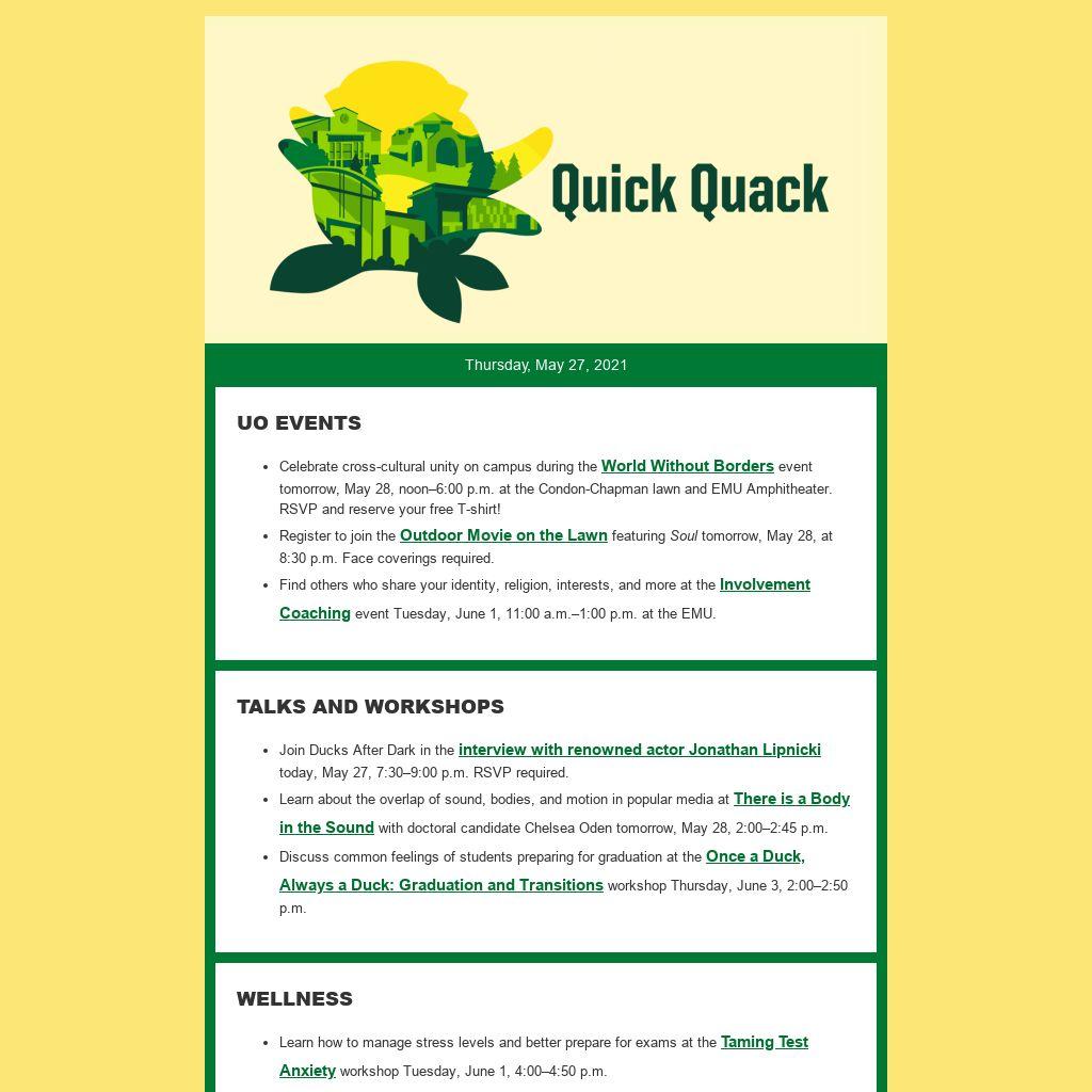 Find others who share your identity, religion, interests, and more at the Involvement Coaching event Tuesday, June 1, 11:00 a.m.–1:00 p.m. at the EMU.