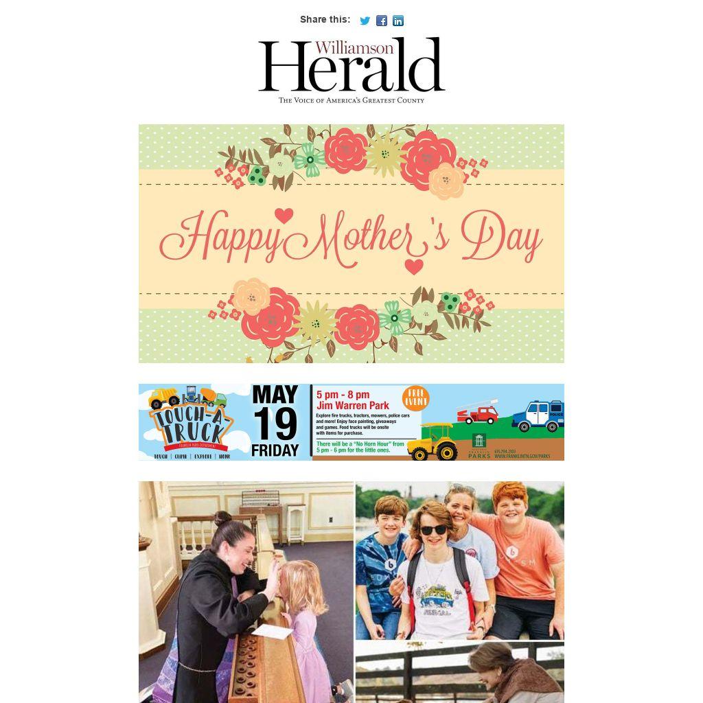 At the top of this eblast you will see buttons to make it easy for you to share this eblast with friends via email, Facebook, Twitter and LinkedIn and follow the Herald. We are listed as wherald, whsports and wherald_ads. Also, like us on FACEBOOK, and don't forget to visit us online at WilliamsonHerald.com. Please patronize our e-blast advertisers and those who advertise and support us in our weekly publication.