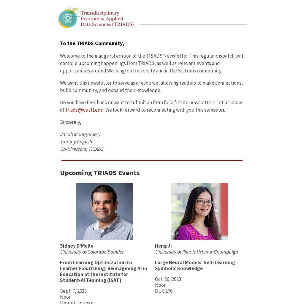 Do you have feedback or want to submit an item for a future newsletter? Let us know at triads@wustl.edu. We look forward to reconnecting with you this semester.