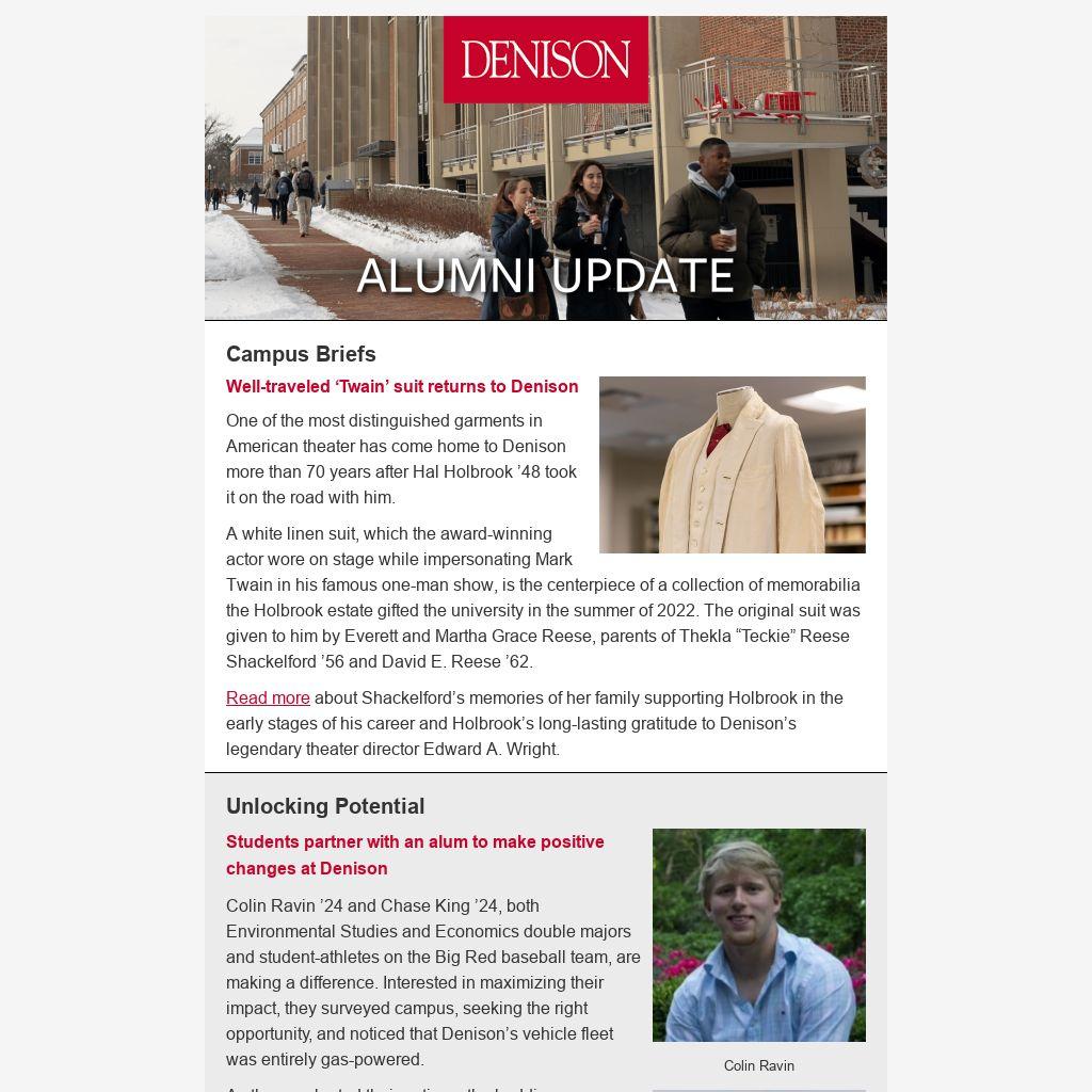 Sharing in the amazing connections that happen post-graduation. I think Denison is a great place for students today. I’m thrilled with the way Denison has nurtured our daughter (Class of 2024). Her opportunities and experiences have been incredible, and I want that for all students.