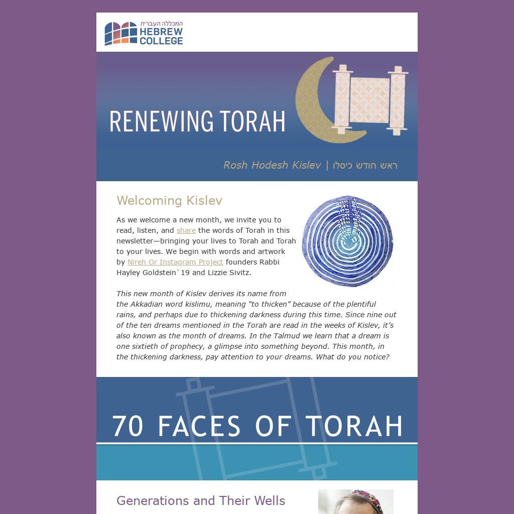 Hebrew College is an innovative national institute for Jewish learning and leadership based in Newton, Massachusetts. We are dedicated to Jewish literacy, creativity, and community, and a world of dignity and compassion for all. Our students are future rabbis, cantors, and educators, and people at every stage of life who love to learn. Together, we are infusing Jewish life with substance, spirit, beauty, imagination, and a sense of purpose. Please join us and support our work with a tax-deductible gift.