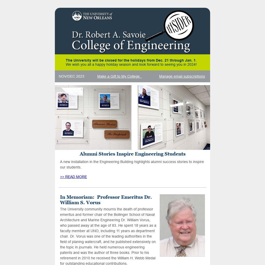The Dr. Robert A Savoie College of Engineering celebrates our 74 graduates. We congratulate them all and encourage them to keep us apprised of all their post-UNO accomplishments!