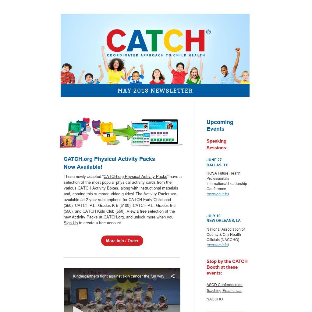 Now Available! These newly adapted “CATCH.org Physical Activity Packs” have a selection of the most popular physical activity cards from the various CATCH Activity Boxes, along with instructional materials and, coming this summer, video guides! The Activity Packs are available as 2-year subscriptions for CATCH Early Childhood ($50), CATCH P.E. Grades K-5 ($100), CATCH P.E. Grades 6-8 ($50), and CATCH Kids Club ($50). View a free selection of the new Activity Packs at CATCH.org, and unlock more when you Sign Up to create a free account.