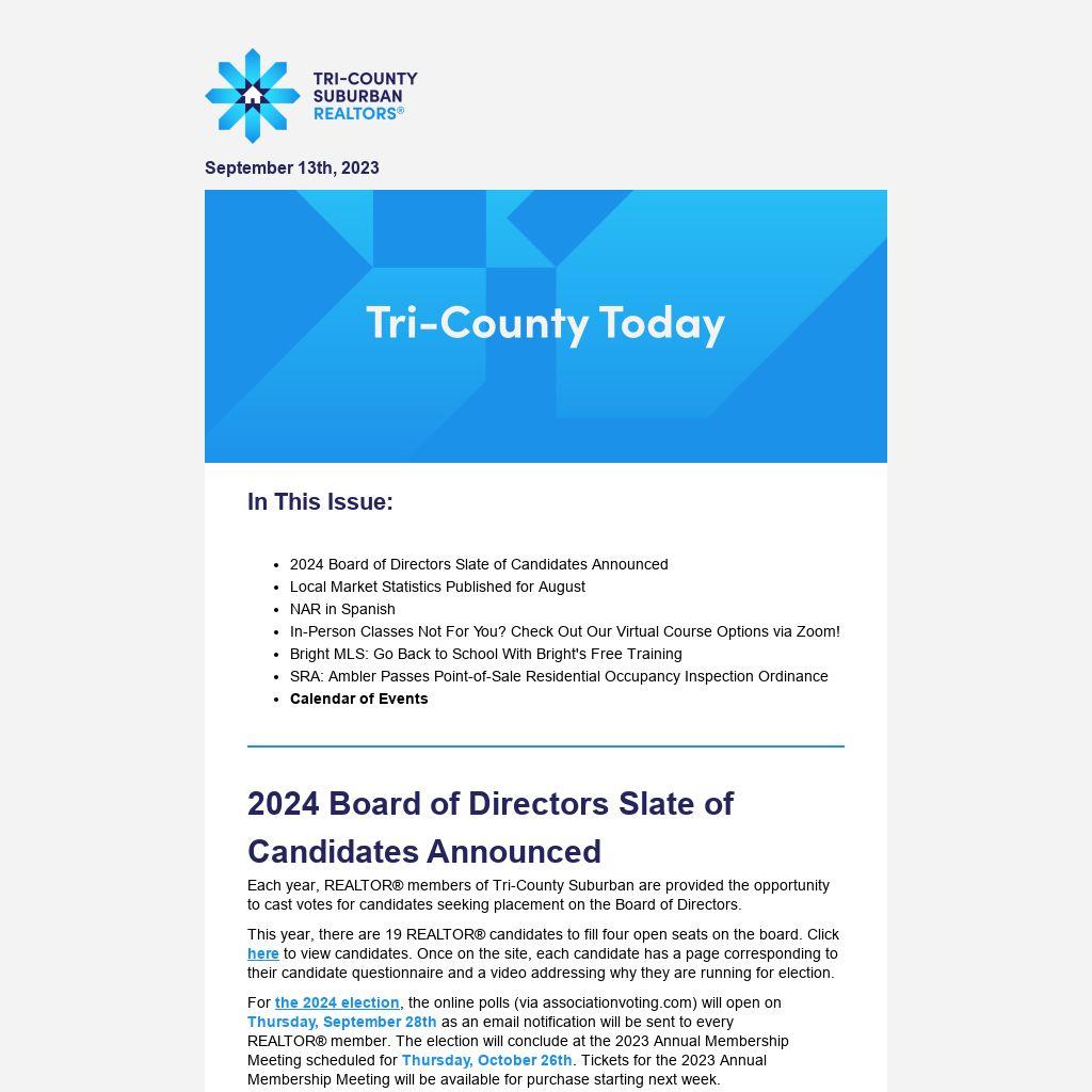 Each year, REALTOR® members of Tri-County Suburban are provided the opportunity to cast votes for candidates seeking placement on the Board of Directors.
