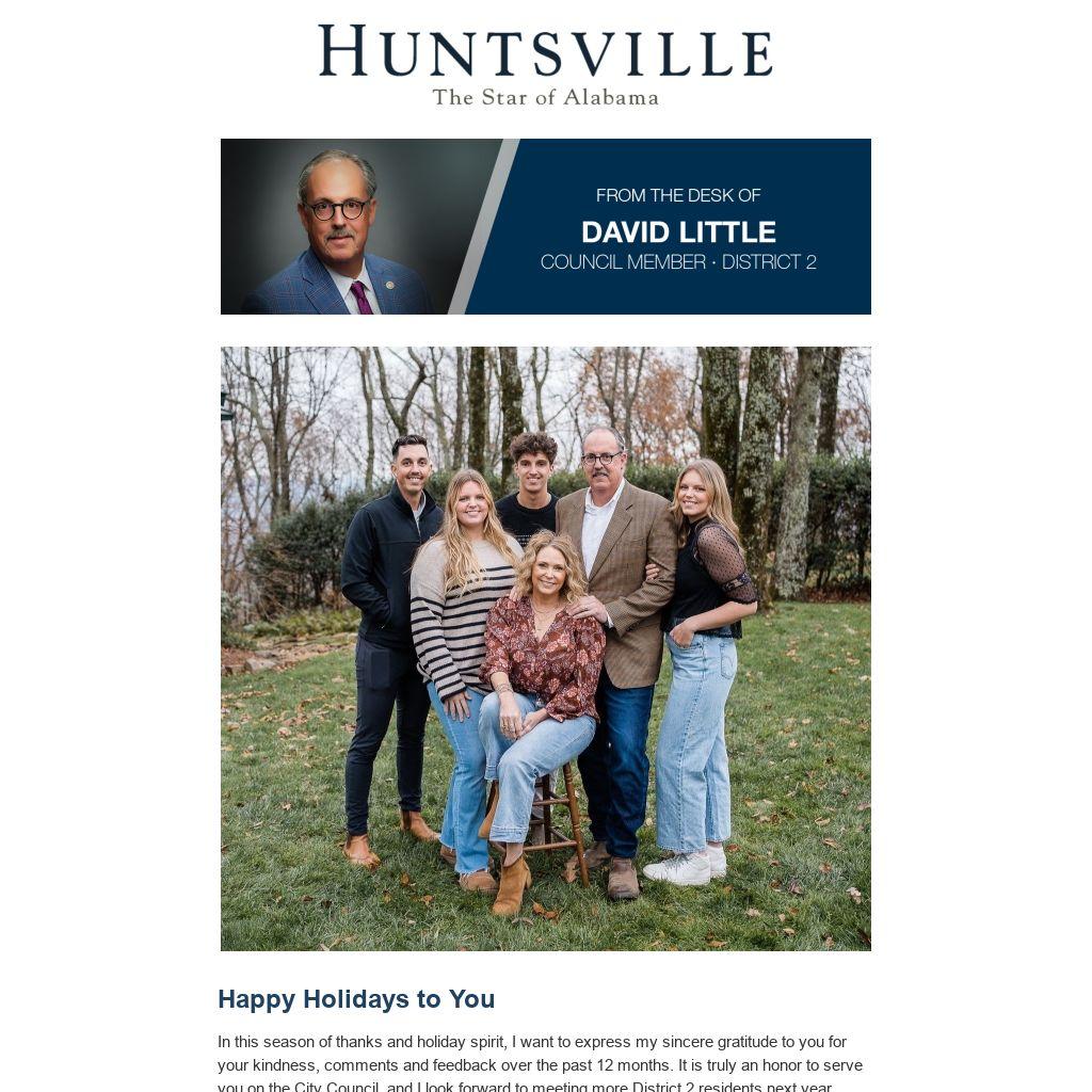 In this season of thanks and holiday spirit, I want to express my sincere gratitude to you for your kindness, comments and feedback over the past 12 months. It is truly an honor to serve you on the City Council, and I look forward to meeting more District 2 residents next year.