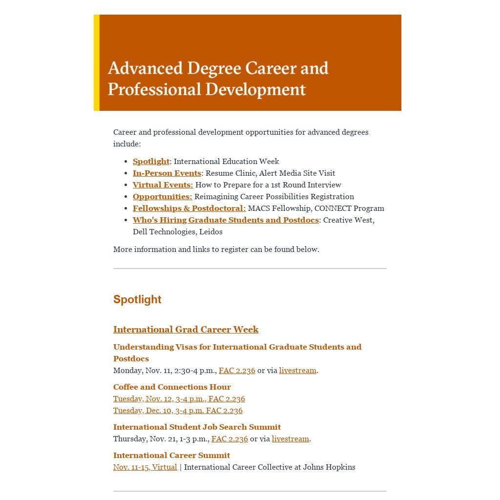International Career Summit Nov. 11-15, Virtual | International Career Collective at Johns Hopkins