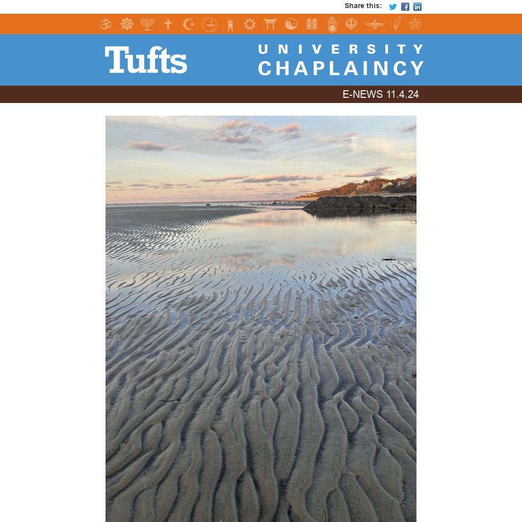 The University Chaplaincy is a dynamic hub supporting religious, spiritual, ethical, and cultural life for all members of the Tufts community. We provide spiritual care, support religious and philosophical communities, educate about spiritual and ethical issues in society and the world, and promote multifaith engagement.