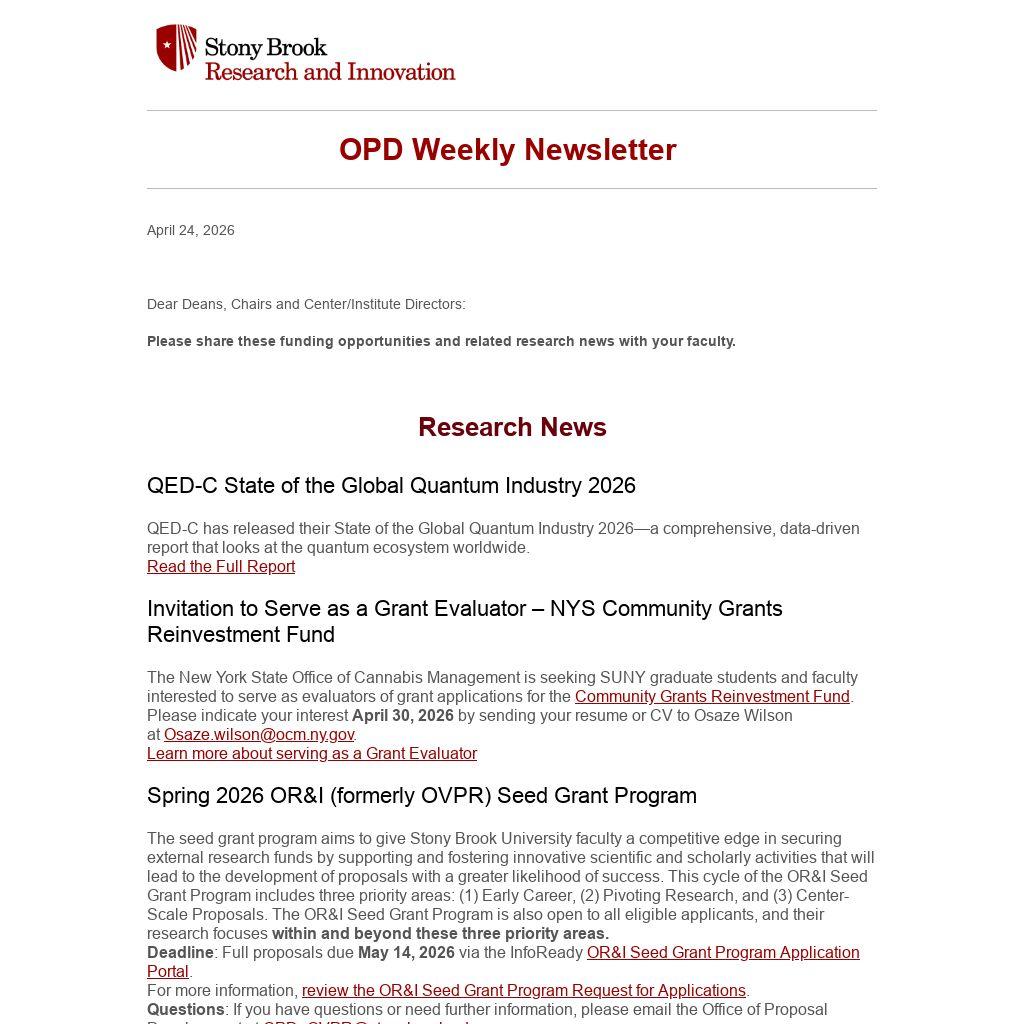 Questions: If you have questions or need further information, please email the Office of Proposal Development at OPD_OVPR@stonybrook.edu.