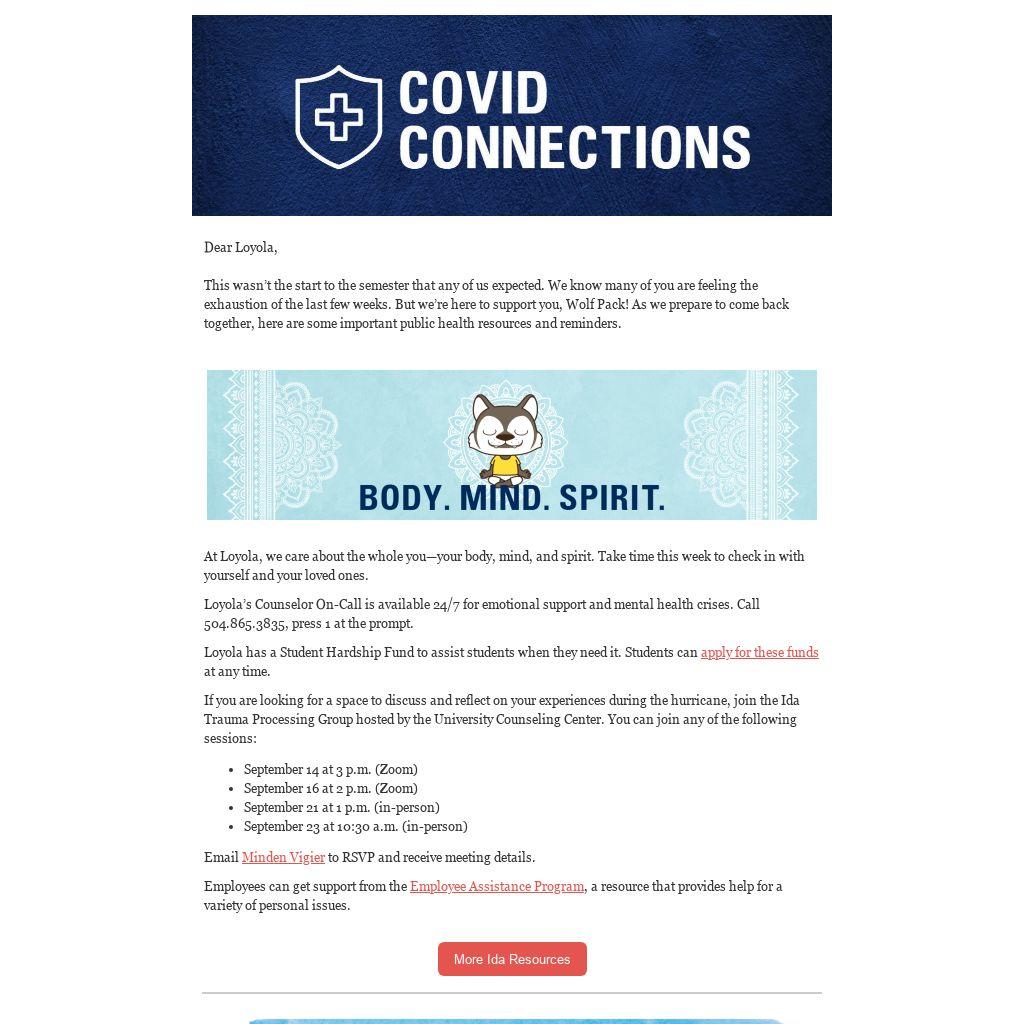 covid@loyno.edu. Public Health will conduct contact tracing for the Loyola community and let you know your next steps.