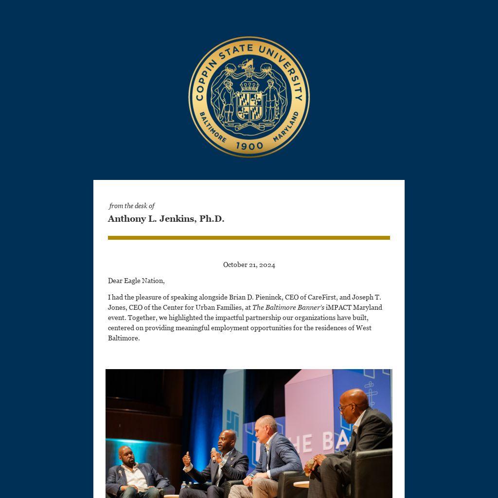 Congratulations on a successsul I Love Coppin Week! Last week we paused to celebrate this tradition as well as what it truly means to be a part of Eagle Nation, while honoring our rich history and laying the groundwork for a transformative future.
