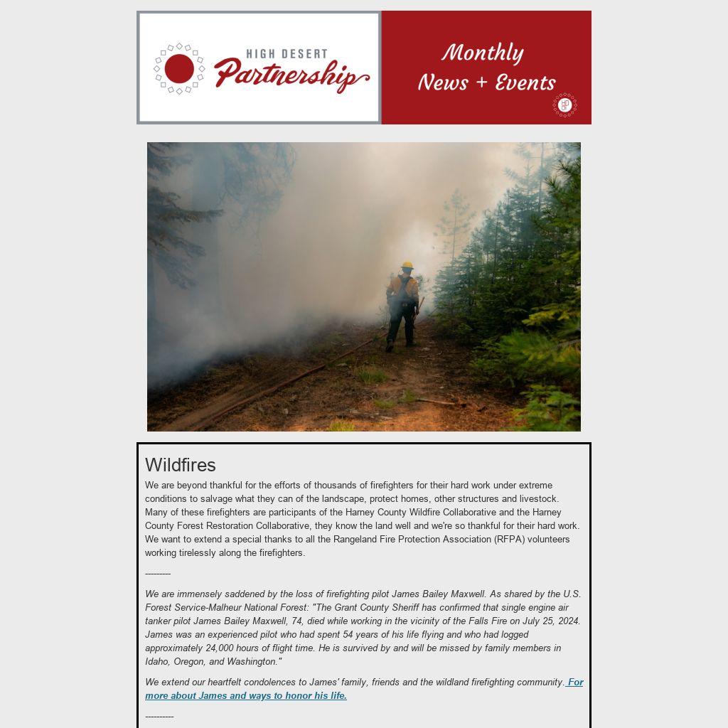 WildfiresWe are beyond thankful for the efforts of thousands of firefighters for their hard work under extreme conditions to salvage what they can of the landscape, protect homes, other structures and livestock. Many of these firefighters are participants of the Harney County Wildfire Collaborative and the Harney County Forest Restoration Collaborative, they know the land well and we're so thankful for their hard work. We want to extend a special thanks to all the Rangeland Fire Protection Association (RFPA) volunteers working tirelessly along the firefighters.