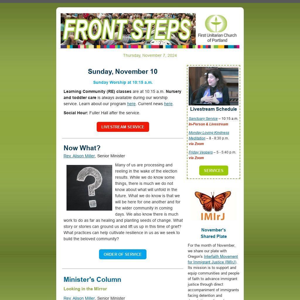Got something for Front Steps? Send in your church-related submission for our weekly publication. Use "Front Steps" as the subject line and submit here.