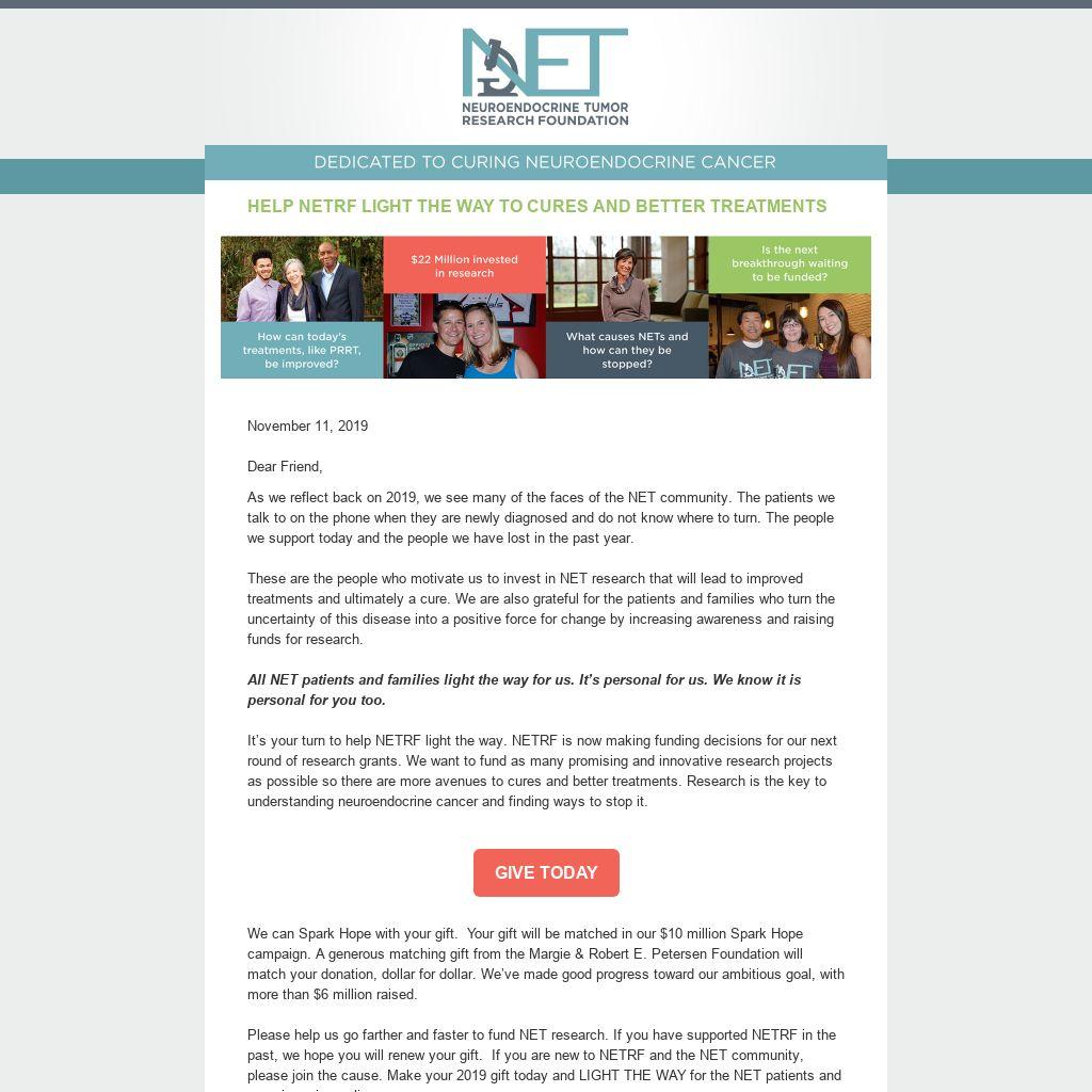 These are the people who motivate us to invest in NET research that will lead to improved treatments and ultimately a cure. We are also grateful for the patients and families who turn the uncertainty of this disease into a positive force for change by increasing awareness and raising funds for research.