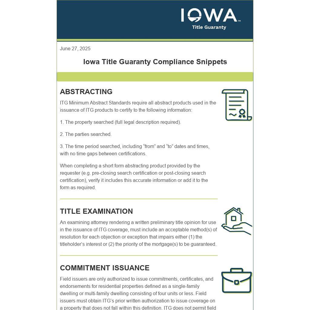Iowa Title Guaranty Compliance Snippets