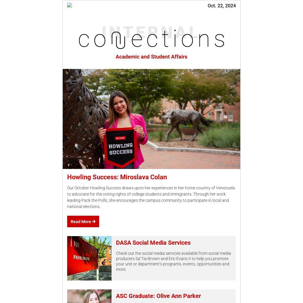 Our October Howling Success draws upon her experiences in her home country of Venezuela to advocate for the voting rights of college students and immigrants. Through her work leading Pack the Polls, she encourages the campus community to participate in local and national elections.
