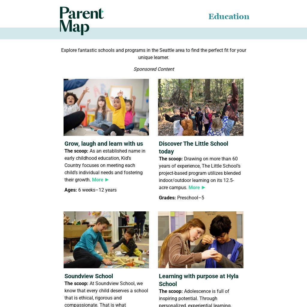 The scoop: Explore options for high-quality programming for 3- and 4-year-olds living in Seattle; dual-language and inclusive classrooms are available. More ►