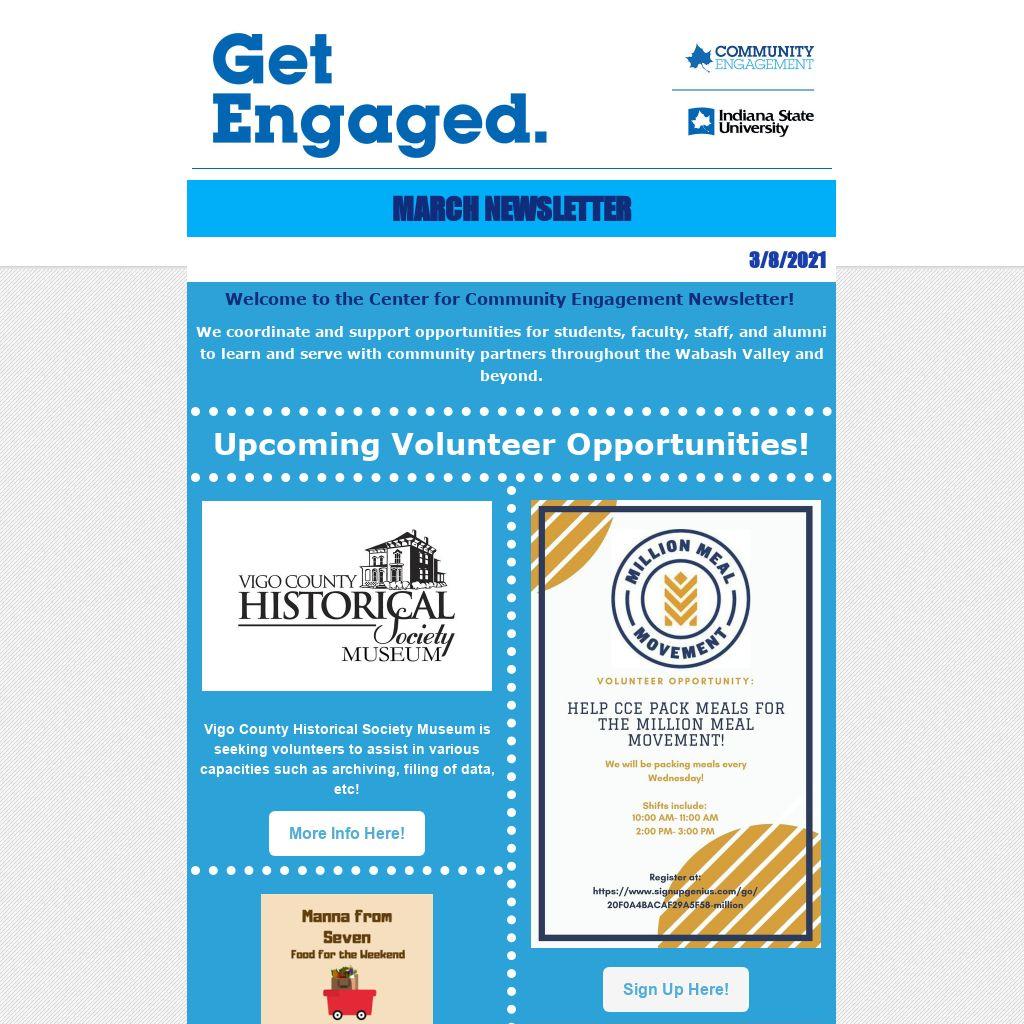 Welcome to the Center for Community Engagement Newsletter! We coordinate an