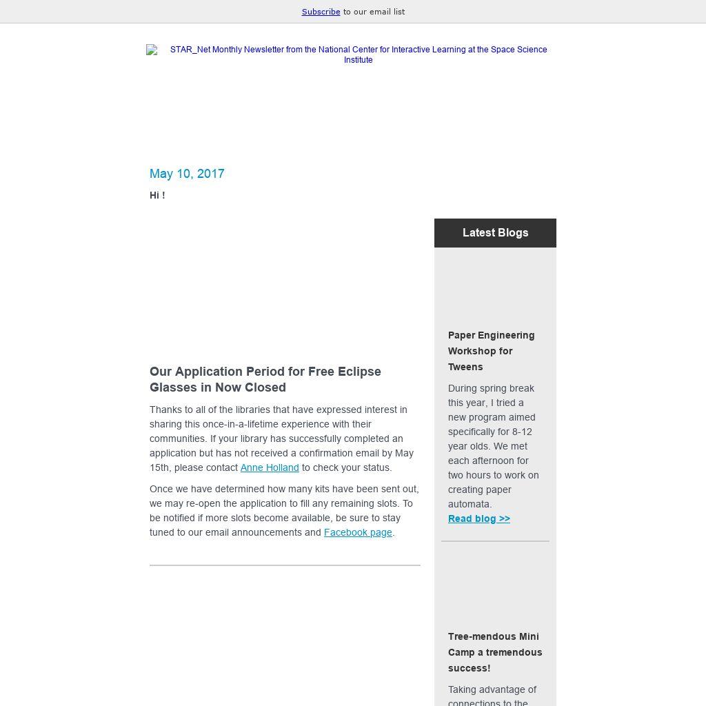 The STAR Library Education Network (STAR_Net) is a hands-on learning network for libraries and their communities across the country. STAR_Net focuses on helping library professionals build their STEM skills by providing “science-technology activities and resources” (STAR) and training to use those resources. Plus, engage public audiences nationwide in informal and lifelong learning with the excitement of exploration and discovery through new NASA@ My Library resources!