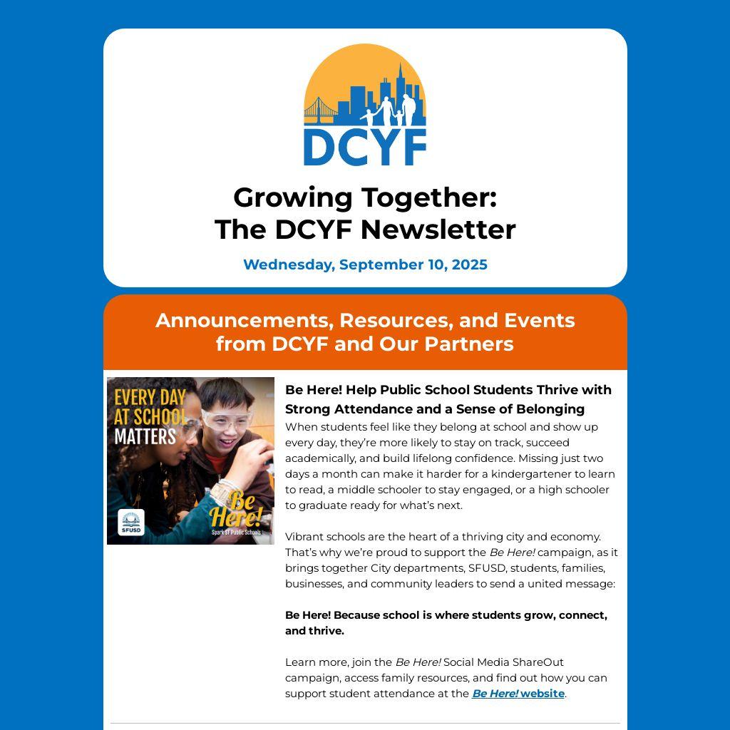 Vibrant schools are the heart of a thriving city and economy. That’s why we’re proud to support the Be Here! campaign, as it brings together City departments, SFUSD, students, families, businesses, and community leaders to send a united message: