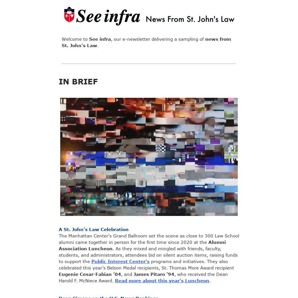Welcome to See infra, our e-newsletter delivering a sampling of news from St. John's Law.