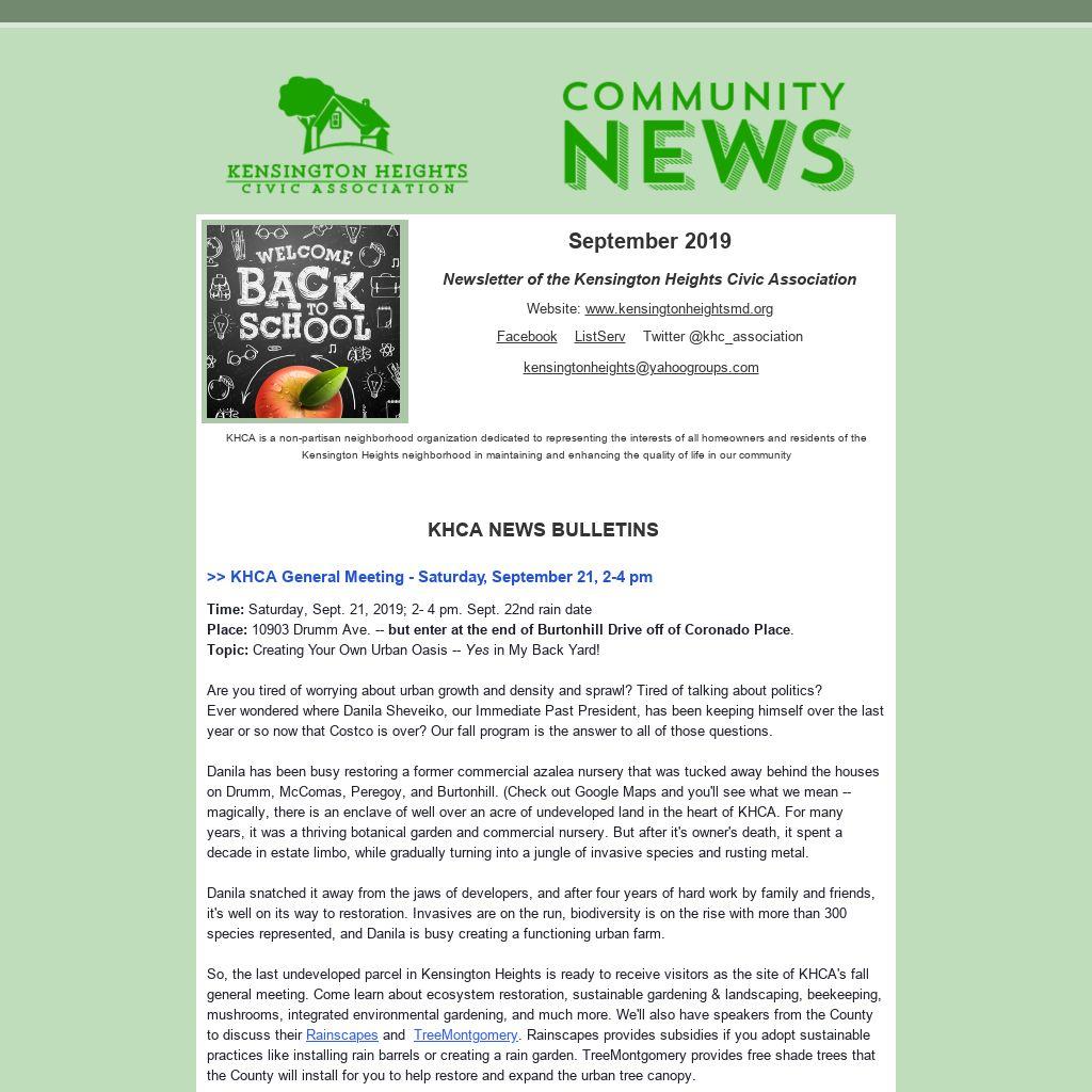 >> KHCA General Meeting - Saturday, September 21, 2-4 pm