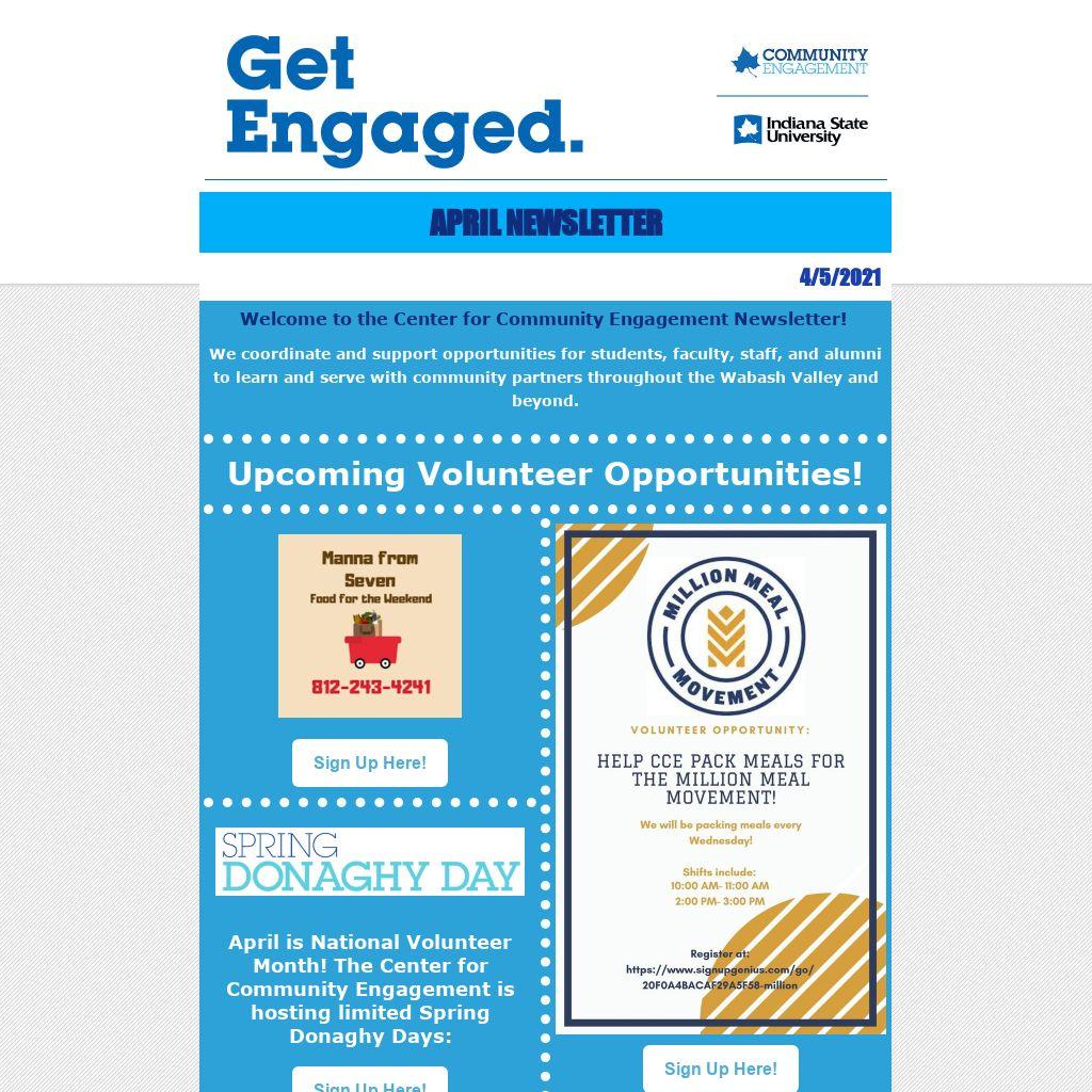 Welcome to the Center for Community Engagement Newsletter! We coordinate an