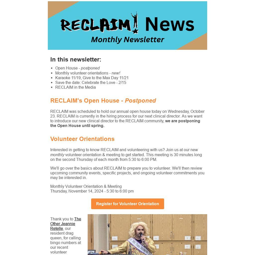 RECLAIM's Open House - Postponed |