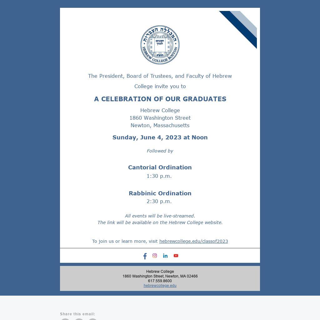 The President, Board of Trustees, and Faculty of Hebrew College invite you to