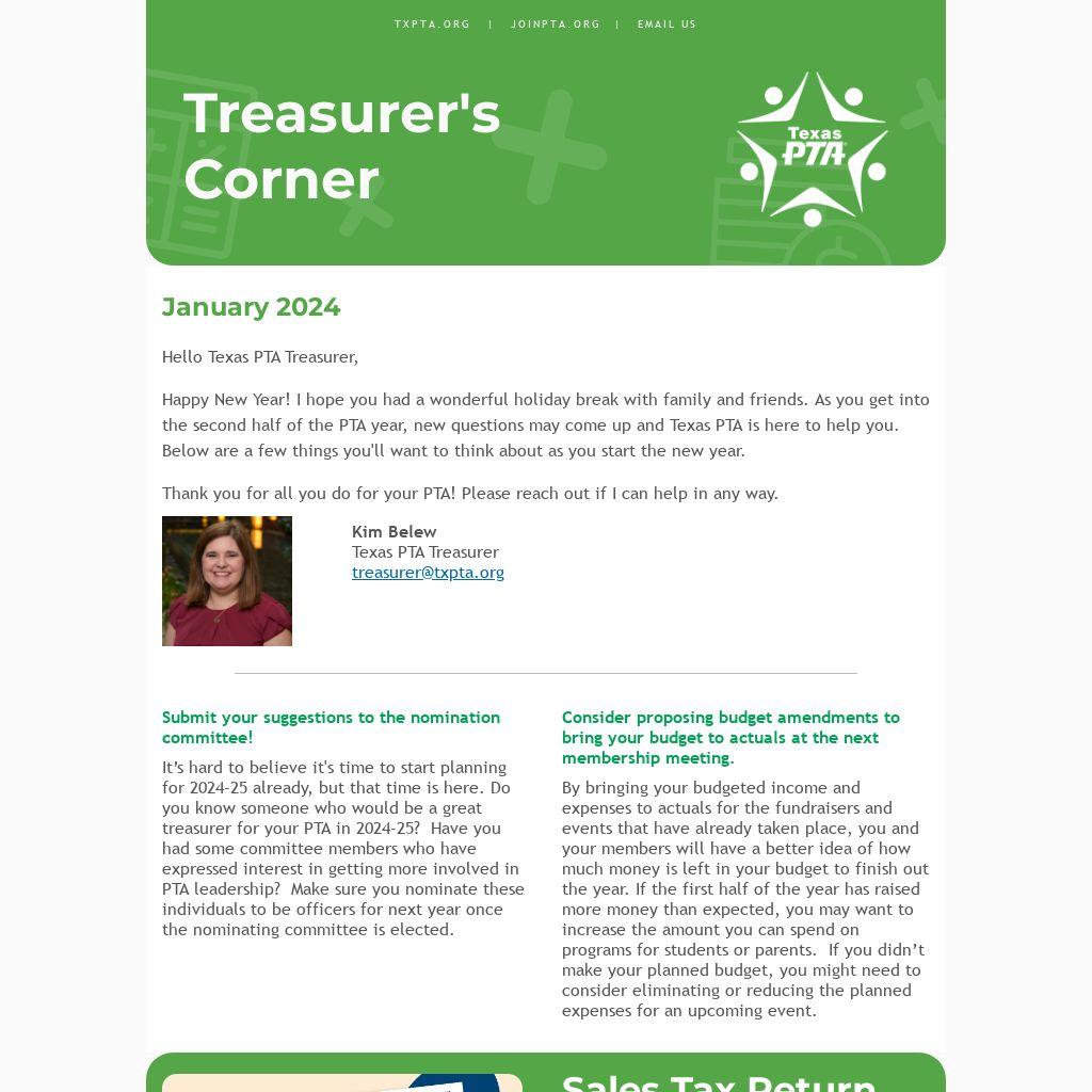 Hello Texas PTA Treasurer,