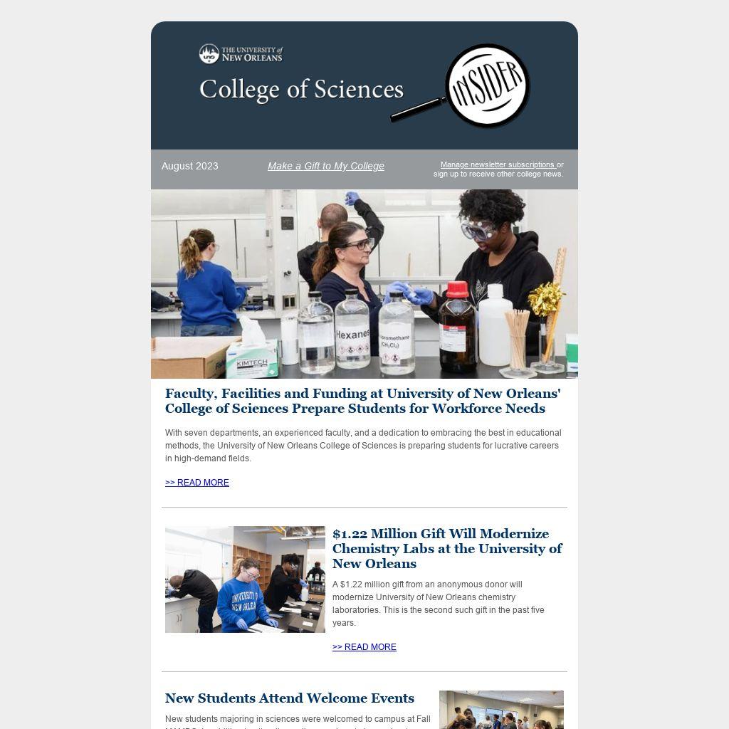 | $1.22 Million Gift Will Modernize Chemistry Labs at the University of New Orleans