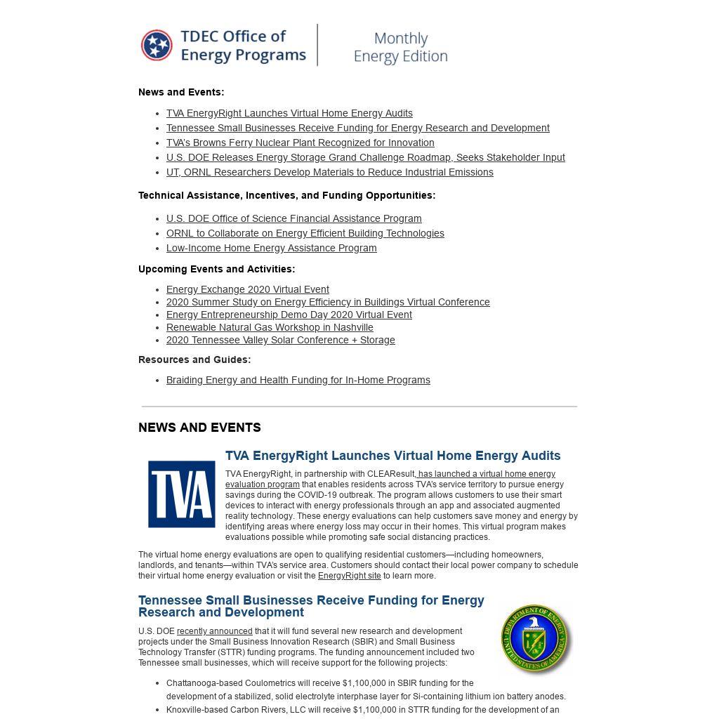 | Tennessee Small Businesses Receive Funding for Energy Research and Development